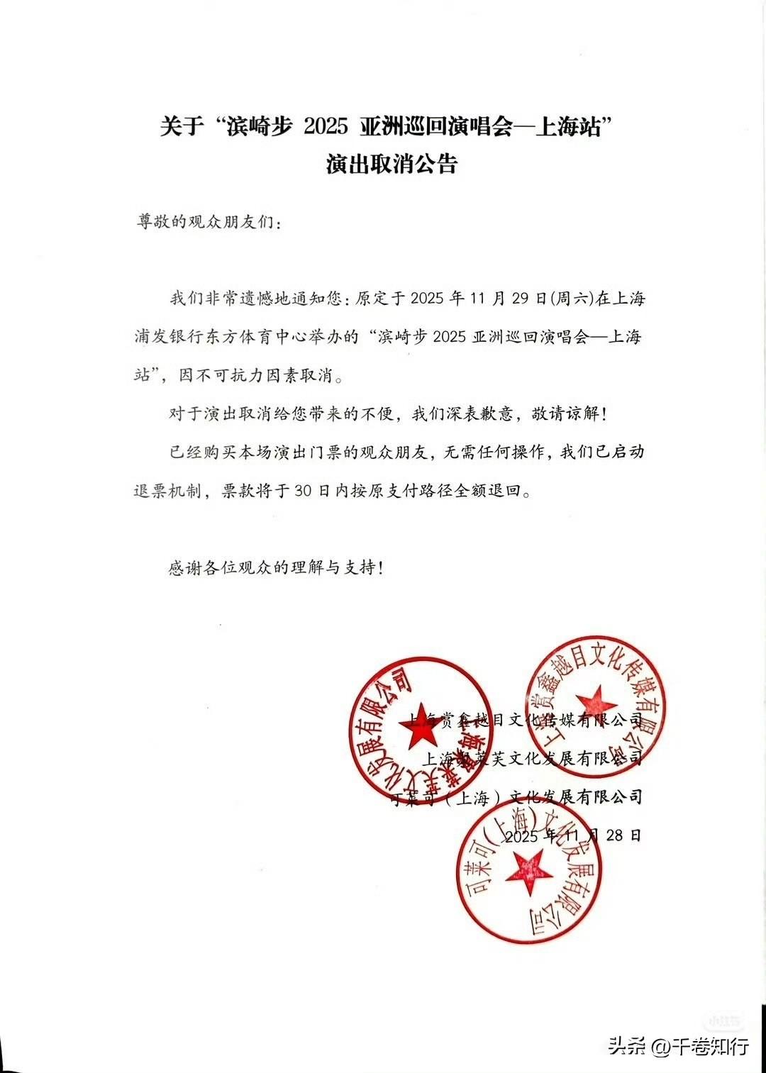 【票都在手了也能黄?这一波“不可抗力”有点猛】 11月28日,外头风挺硬,朋友圈里更是凉飕飕一片。 刚还在群里看哥几个显摆滨崎步的门票,转眼间,退票短信就跟连珠炮似的炸了。不光滨崎步,和田薰的交响乐、还有好几个日本乐队,齐刷刷全按下了暂停键。理由就那四个字——“不可抗力”。 有个小兄弟为了看演出,年假都梭哈了,现在坐那儿直拍大腿,那一脸的苦相看着都心疼。网上也是吵翻了天,不少人直接点名日本那位高市早苗,说是她在那边瞎折腾,连累这边大伙儿听不了歌。 咱说实话,老百姓过日子就图个乐呵,可这乐呵有时候也得看“天气”。风向一变,咱除了裹紧大衣,也没别的招。 钱是能退,可这满心欢喜扑了空,谁给报销啊?