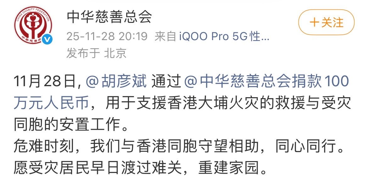 胡彦斌向香港捐款100万胡彦斌捐赠100万元谁懂啊!胡彦斌这波公益操作杀疯了🔥 100万善款火速驰援香港,行动快到让人破防!深耕公益多年从不是说说,用实际行动践行责任,让善意跨越山海传递温暖。正能量艺人的榜样力量,必须狠狠打call,这份大爱值得全网点赞~