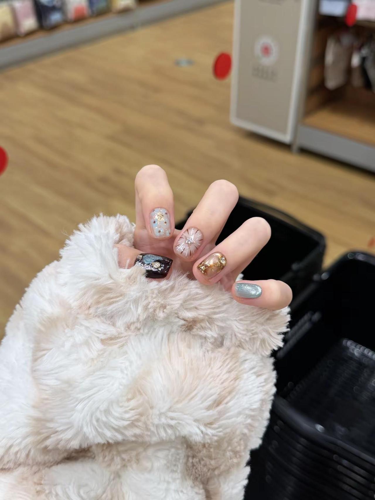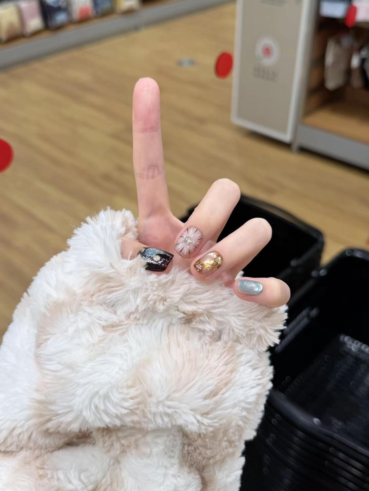 星光琥珀好好看。辣妹美甲日式美甲可爱美甲