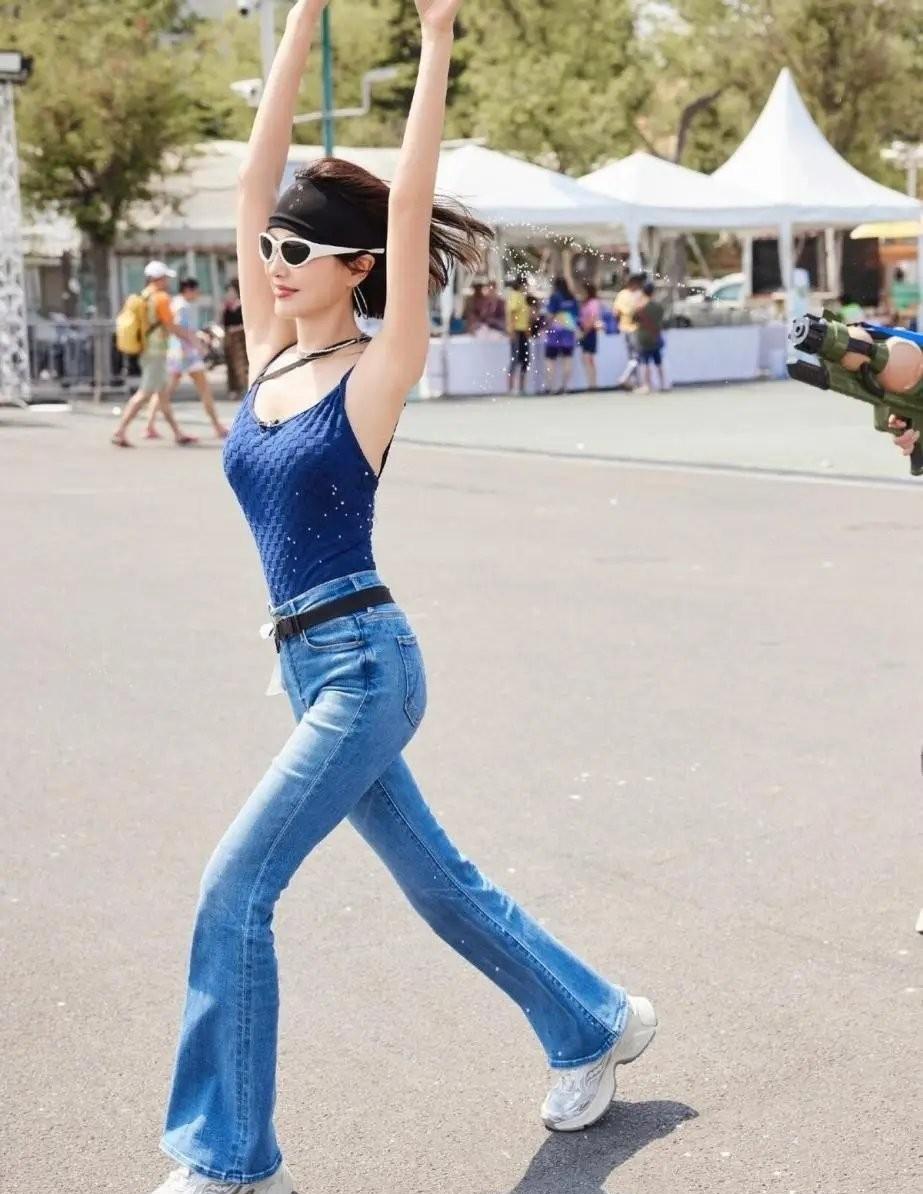 秦岚这组湿身照火了,吊带紧身裤直接封神。 46岁还能这么穿,真不是谁都能学的。