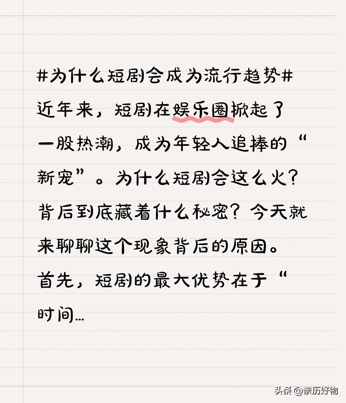 近年来,短剧在娱乐圈掀起了一股热潮,成为年轻人追捧的“新宠”。为什么短剧会这么火?背后到底藏着什么秘密?今天就来聊聊这个现象背后的原因。 首先,短剧的最大优势在于“时间短”。在快节奏的生活中,大家都没有太多时间坐在电视机前看长篇大剧。碎片化的时间成为主流,短剧恰好满足了这一需求。十几分钟、一集几分钟的内容,让人随时随地都能追剧,无需长时间投入,轻松打发等车、排队、休息的空隙。 其次,短剧内容更贴近年轻人的生活和兴趣。很多短剧题材新颖、题材多样,有甜宠、悬疑、搞笑、青春校园、职场生活等等。内容紧凑,节奏明快,容易引发共鸣。年轻人喜欢看“接地气”的故事,短剧正好满足了他们的“快餐式”娱乐需求。 再者,短剧的制作成本相对较低。相比传统长剧,短剧制作周期短、成本低,制作团队可以快速推出新内容。这样一来,平台和制片方可以不断尝试不同题材和风格,满足市场多样化的需求。同时,短剧也更容易在社交媒体上传播,用户分享转发的频率高,形成病毒式传播。 此外,短剧的互动性更强。很多短剧会结合弹幕、评论、投票等互动元素,让观众参与到剧情中来。这种参与感增强了观众的粘性,也让短剧更具趣味性和话题性。大家喜欢在评论区讨论剧情走向,甚至影响剧情发展,形成一种互动的社区氛围。 平台的推动也是短剧火爆的重要原因。各大视频平台、短视频App纷纷布局短剧内容,推出专属栏目,投资大量资源打造精品短剧。平台通过算法推荐,将热门短剧推送给目标用户,精准触达,极大提高了观看率和传播度。平台的扶持让短剧成为流量的“吸金池”。 此外,短剧也为新晋演员和编剧提供了更多机会。相比长剧的高门槛,短剧门槛较低,很多新人演员和年轻编剧可以通过短剧展示才华,积累经验。这样一来,短剧成为新力量的孵化器,也推动了整个行业的创新和发展。 当然,短剧的内容也在不断丰富,题材不断创新。从最初的简单搞笑、甜宠,到现在的悬疑、科幻、社会话题,类型日益多元化。这种多样性吸引了不同年龄层、不同兴趣群体的观众,形成了庞大的粉丝基础。 总结一下,短剧火爆的原因有很多:满足碎片化时间需求、内容贴近年轻人、制作成本低、传播快、互动性强、平台扶持以及为新人提供舞台。这些因素共同作用,造就了短剧的爆炸式增长,也让它成为了新时代娱乐的重要组成部分。 未来,短剧还会继续创新和突破。随着技术的发展,比如虚拟现实、增强现实的应用,短剧的表现形式可能会更加丰富多彩。观众的审美也在不断提高,短剧内容会更加精良,故事更具深度。而平台之间的竞争也会促使短剧市场不断繁荣,带来更多惊喜。 可以说,短剧的崛起不仅仅是一股潮流,更是一场娱乐方式的变革。它打破了传统长剧的束缚,让更多人可以轻松享受精彩内容。短剧的火热,反映了现代社会快节奏、碎片化的生活方式,也预示着未来娱乐产业的新趋势。 总之,短剧之所以能成为流行趋势,是多方面因素共同作用的结果。它满足了现代人的时间碎片化需求,内容丰富、形式多样、传播迅速,平台的支持和新人们的加入,更让它持续火热。未来,短剧还会带给我们更多惊喜,成为娱乐生活中不可或缺的一部分。