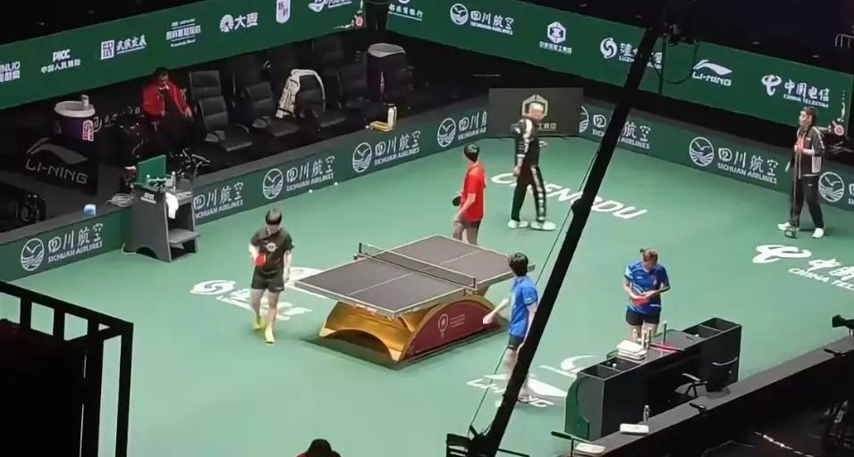 成都混合团体世界杯,莎头重组,开启混双模式。 今天国乒团队在成都混合团体世界杯比赛场馆进行适应性训练。 孙颖莎与王楚钦搭档混双进行训练。 一开始两人一对一热身训练,热身途中王楚钦还灵机一动玩出一招许昕的背后击球。 接着进入正式训练,孙颖莎王楚钦搭配对阵陈熠袁励岑组合。 看起来莎头组合在WTT年终总决赛比赛上场前先要通过混团热热手! 国乒混双负责教练肖战与孙颖莎主管教练邱贻可都在场边紧盯莎头训练。