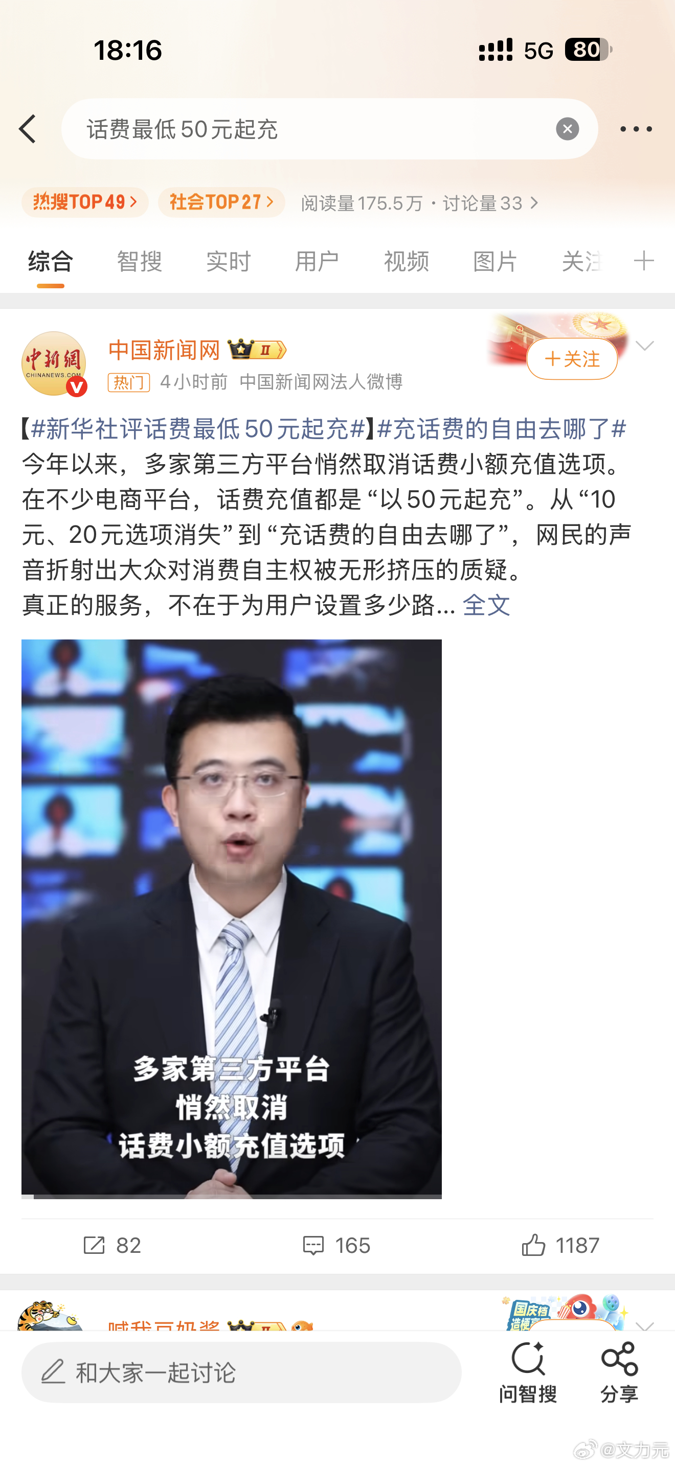 话费最低50元起充,可能很多年轻人觉得没啥,但是对于很多老人来说一个月就是最低的月租,平常也不咋用电话,然后家里边儿连着Wi-Fi基本也不用流量,为什么他们也要最低交50呢?还是要考虑到更多的群体呀。