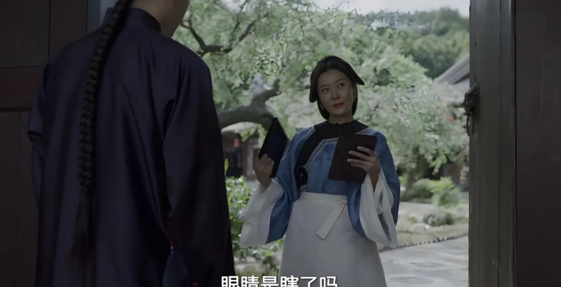 她没有穿绸缎绫罗,也没有戴奢华首饰,简简单单一身家常服装,还系着围裙,亲自开门待客,看起来就是寻常人家一女子。