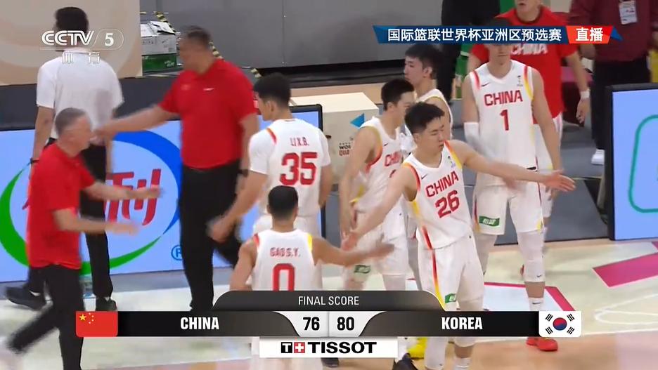 刚刚!“开门黑”,76:80中国男篮负于韩国男篮,整场比赛中国队无一次领先,全场被韩国队压着打,从比赛过程来看,中国队进攻组织可以用“零敲碎打”形容,配合完全没有章法,全场几乎没有亮点,倒是韩国队打得思路清晰、行云流水,比赛打到第四节剩余五分钟时,中国男篮的心气消磨殆尽,待到比赛剩余最后2分钟时,中国男篮突然找到状态,但时间所剩不多,中国队尽管不断发力,但“烂到家”的三分球始终不给力,比赛回天乏术,中国队取得国际篮联世界杯亚洲区预选赛第一阶段第一场比赛的“开门黑”。