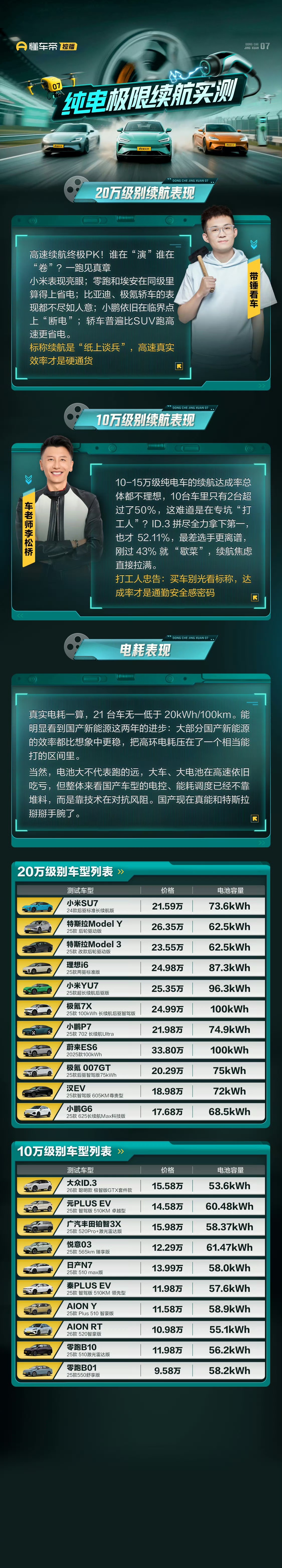 雷军回应小米汽车续航测试懂车帝这次测试堪称地狱模式:120km/h匀速、满载375公斤,动能回收最低,完全还原节假日自驾的真实场景,比那些实验室数据靠谱多了。结果小米SU7拿了续航达成率第一,YU7跑了全场最远,作为新势力车企,第一次下场就稳住这成绩,确实厉害了