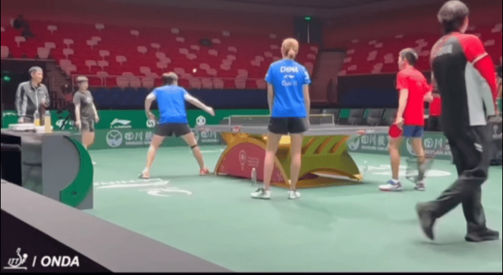 王楚钦又换右手打球了,像假肢还没适应好的感觉😁 莎莎和楚钦今天合体训练,为混团的混双比赛做准备。 一开始头哥先换了一个发球, 莎莎说:“就一开始抛的时候就带转的”,把大家都逗笑了。 然后,头哥又开始换右手打球, 虽然现在像假肢,但是早晚得被这小子练会了右手打球。 现在已经挺像那么回事。 混团比赛30号开始,比赛加油哦。