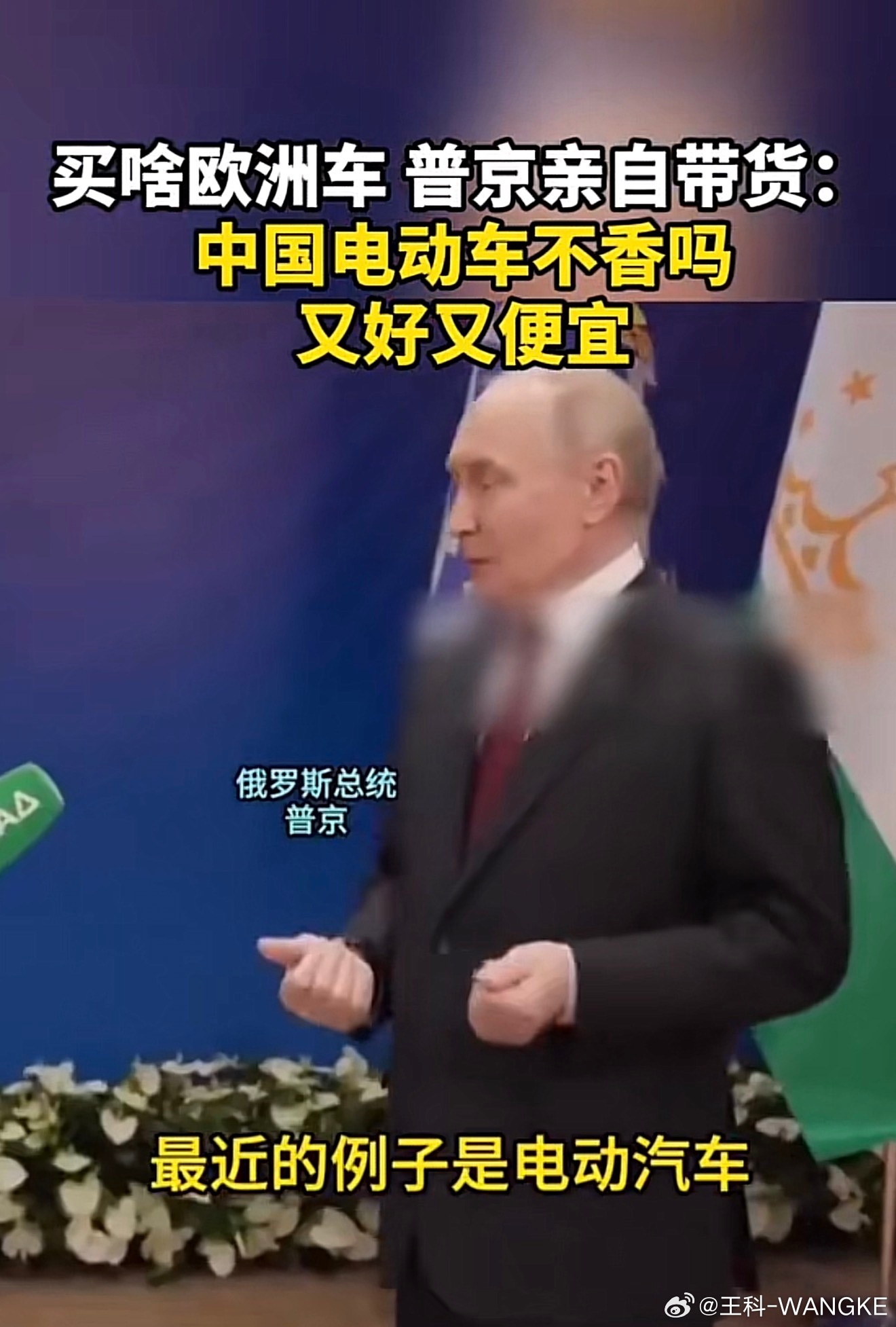 普京亲自带货中国电动汽车!世界级带货大主播!
