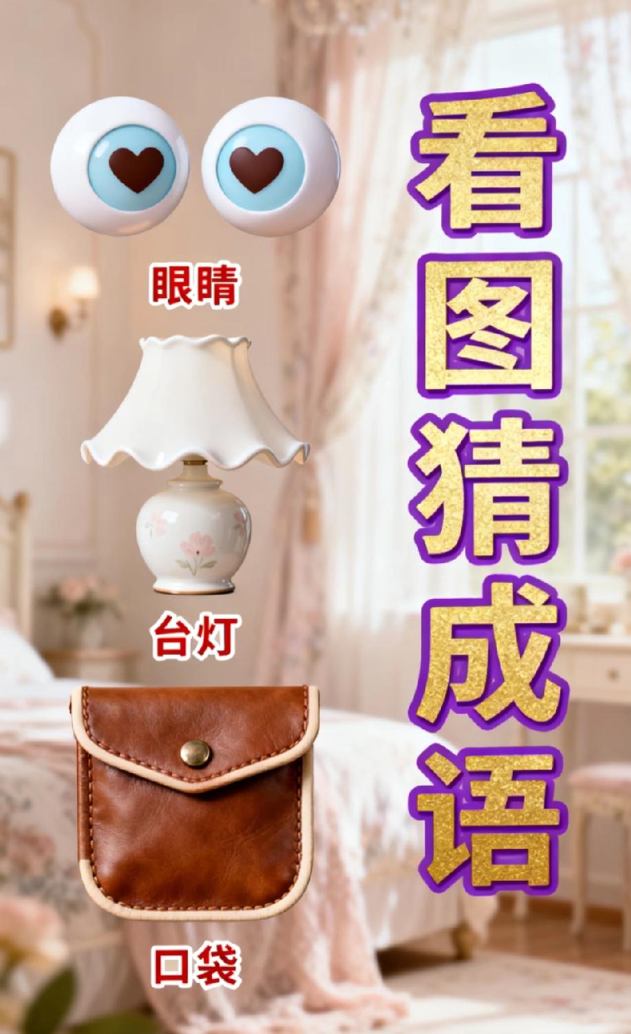 你能随口说出几个成语这组看图猜成语太烧脑!眼睛+台灯+口袋,能猜对的人语文老师要骄傲了?
