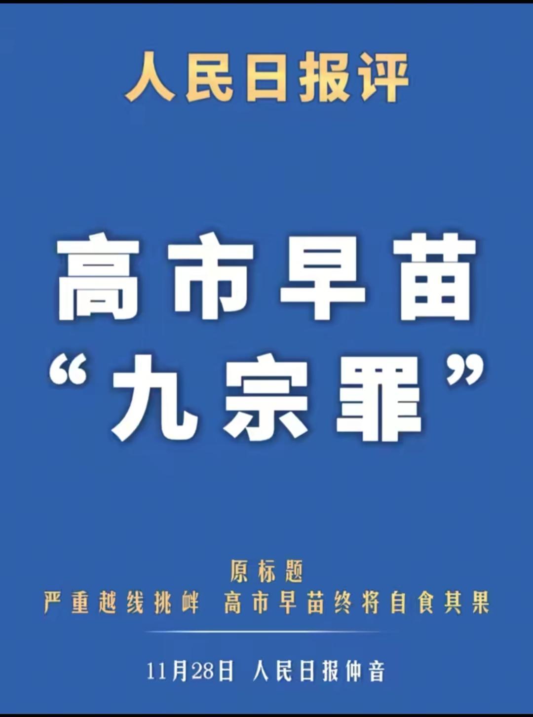 扒光高市早苗的反华底裤! 这些恶行没人能忘 别被高市早苗慰问香港火灾的假惺惺嘴脸骗了,她的反华黑料一箩筐,每一件都戳着中国人民的痛处,骨子里全是恶意。 这女人是妥妥的日本右翼,常年为军国主义招魂,1994年就公开质问首相为何承认侵略战争错误,还建议推翻道歉的“村山谈话”,常年参拜靖国神社,公然否认南京大屠杀、质疑慰安妇,甚至给美化希特勒的书作序,毫无底线。 在台湾问题上她更是变本加厉,屡次叫嚣“台湾有事就是日本有事”,窜台勾结民进党势力,鼓吹日台建“准安全联盟”,还在社交媒体公然给台湾当局人员贴伪称,国会答辩时放话要武力介入台海,触碰中国红线后拒不认错,摆明了要搞“以台制华”。 此前一系列反华操作惹得中方多层级严正抗议,各大部门接连出台反制措施,她却转头借香港火灾装善良博好感,纯属黄鼠狼给鸡拜年。满手黑料的她,再怎么伪装也藏不住反华本质,这些恶行早刻在大家心里,永远别想洗白。