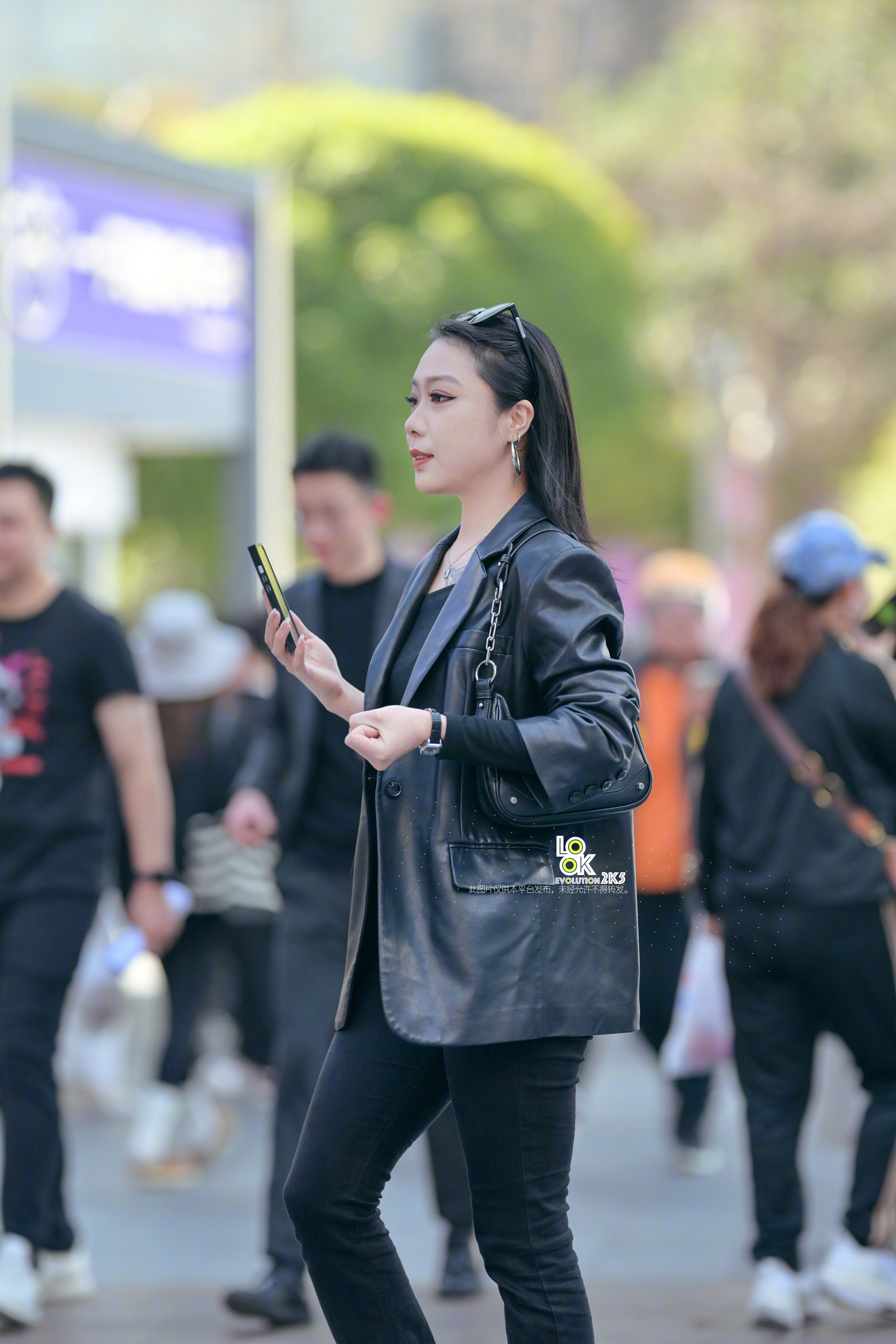 这套穿搭是「性感轻熟风」的代表~黑色皮质连衣裙自带酷飒质感,收腰包臀的中长版型勾