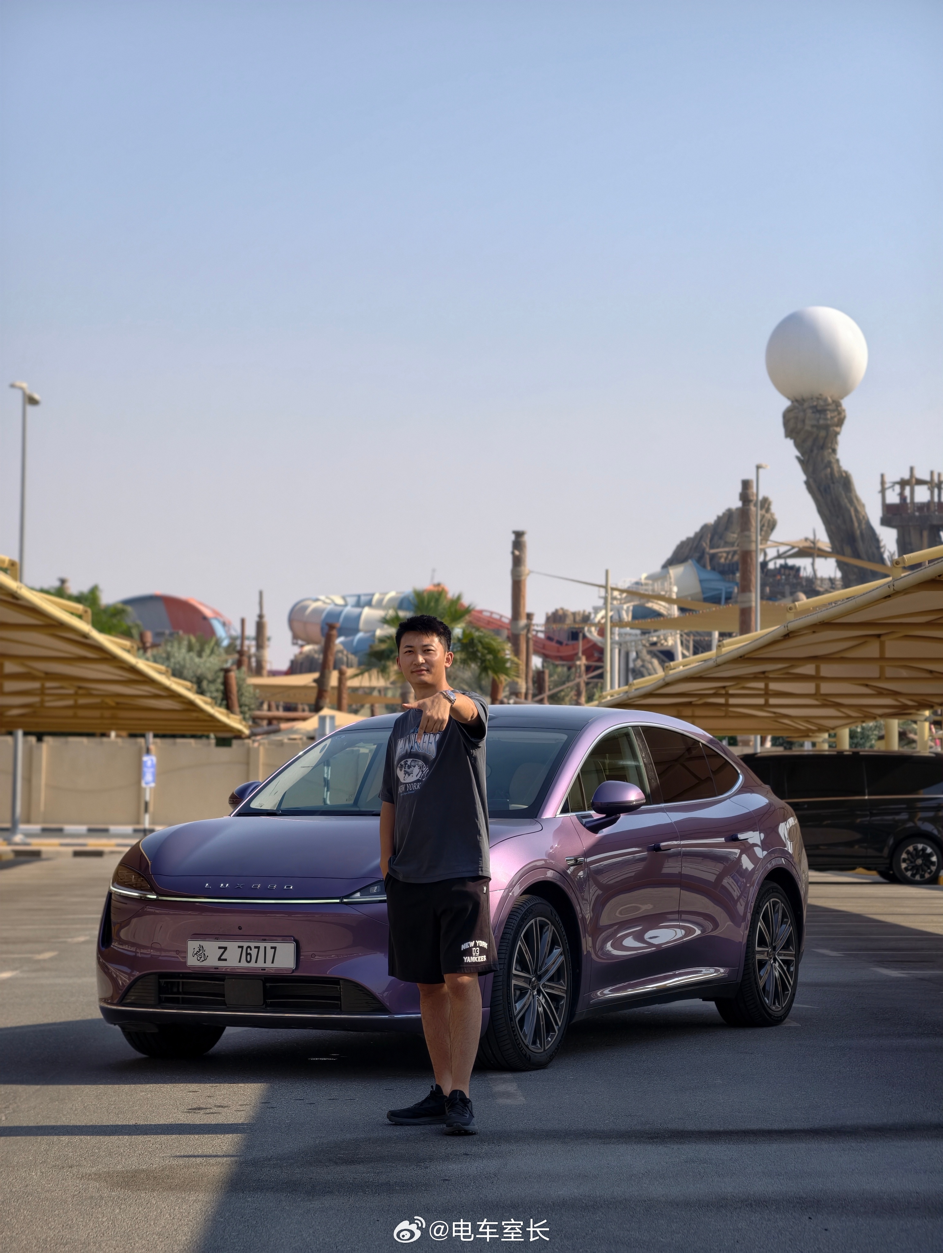 已经晒成黑炭了,勿念在国外开中国车真是香啊阿布扎比亚斯岛刘亦菲智界R7