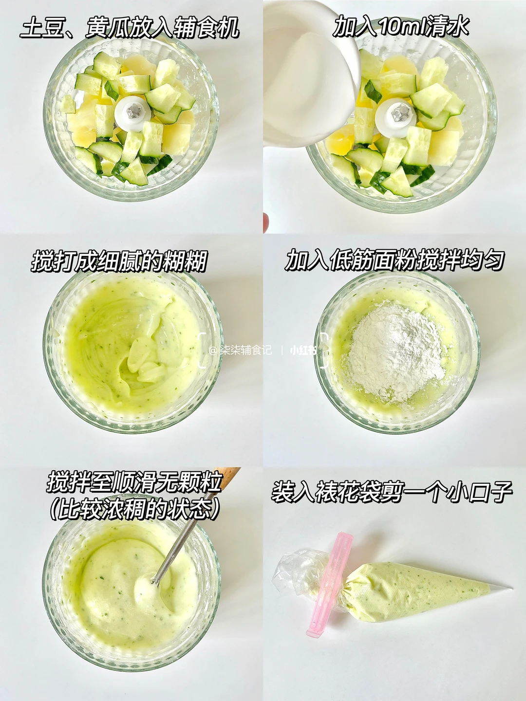 ▫️蒸好的土豆和黄瓜放入辅食机,加入10ml清水,搅打成细腻的糊糊