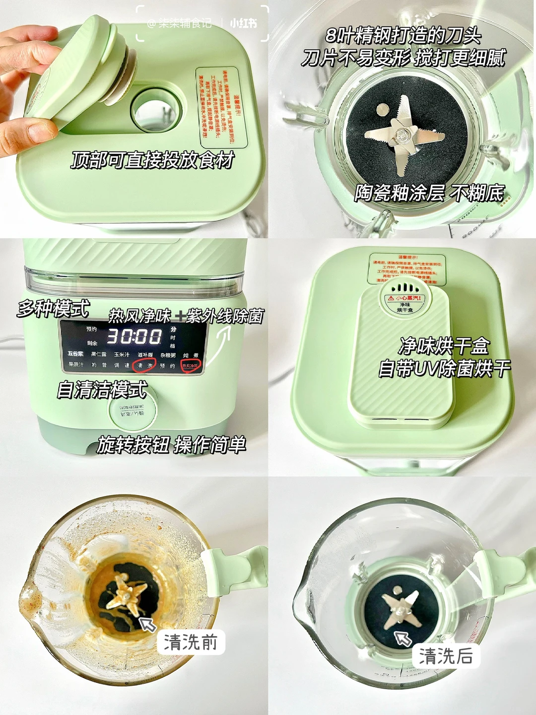 破壁机用的是Hamilton Beach 汉美驰破壁机,这款自带除菌烘干盒,烘干的同时还可以去除异味,加厚的隔音盒,早上起床给宝宝做早餐都不用担心会吵醒宝宝,底部是陶瓷釉涂层,不糊底,搭配8叶精钢打造的刀头,刀片不易变形,搅打米糊、豆浆更细腻还有预约功能,晚上睡前预约一下,早上醒来就能喝也是很方便。