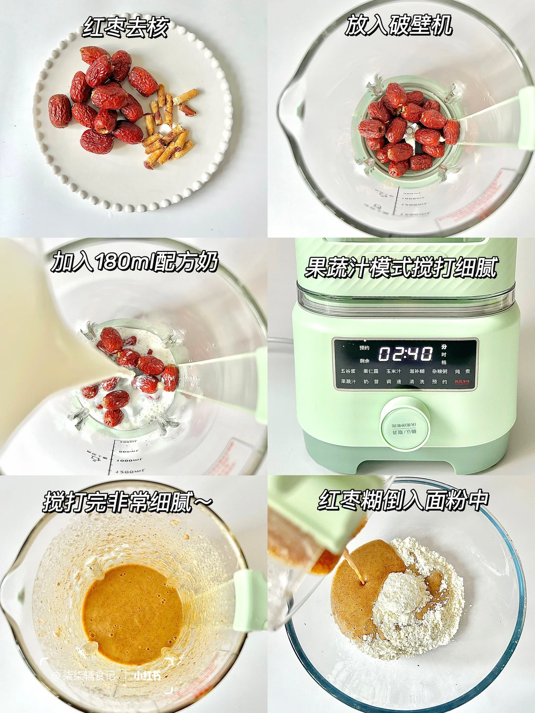 ▫️红枣去核,放入破壁机➕180ml配方奶,搅打成细腻的糊