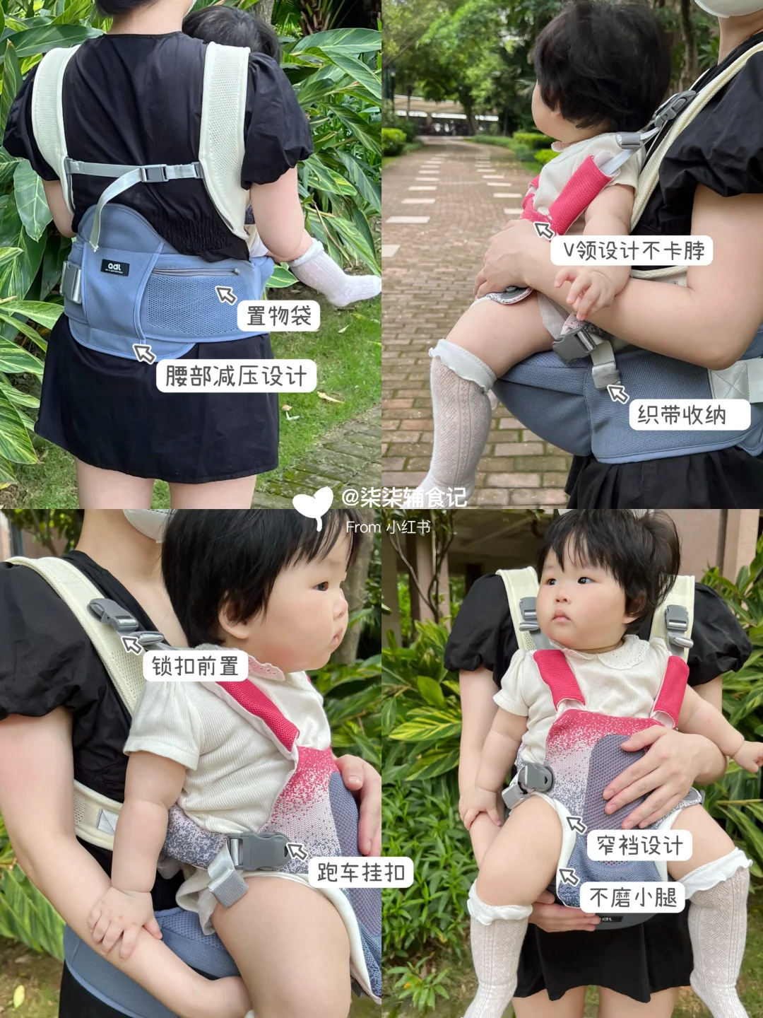 背带式设计,带着柒柒去公园玩了2小时都不累,柒柒在上面坐着好开心哈哈😄一直愉快的晃动自己的小脚丫。