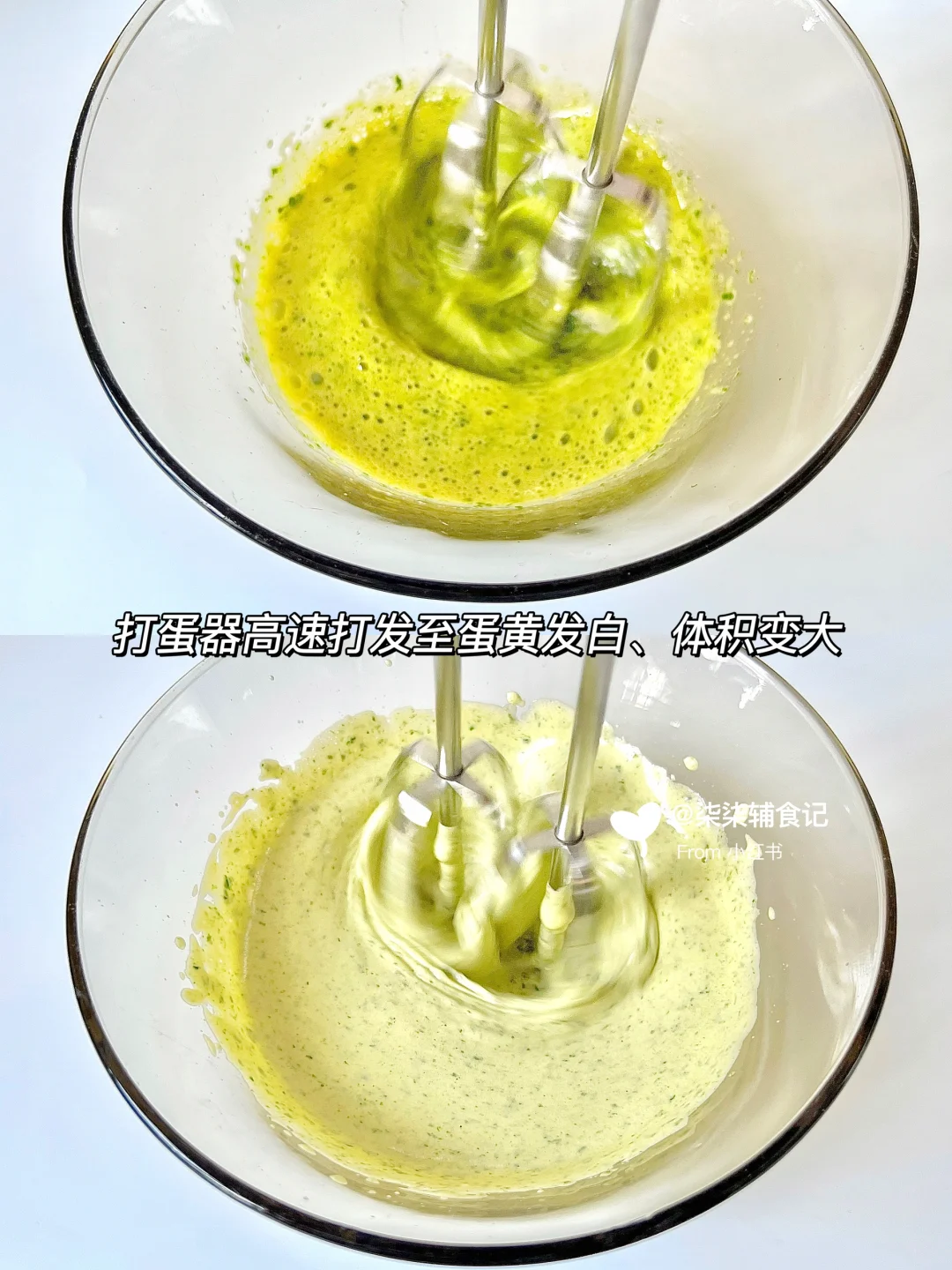 ▫️取10g菠菜泥(菠菜汁)放入蛋黄中