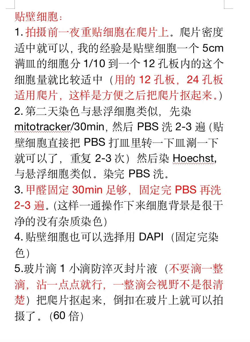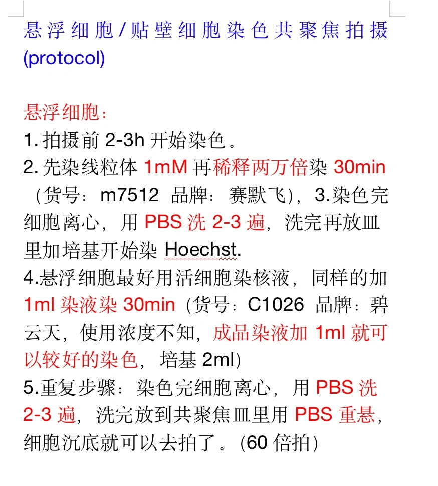 悬浮细胞贴壁细胞染色共聚焦拍摄protocol