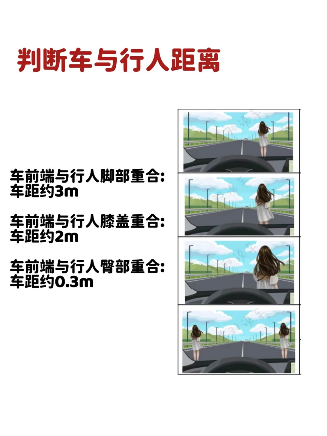 左侧行人距离:车窗下边框与行人膝盖部重合时:车距 0.5m左右