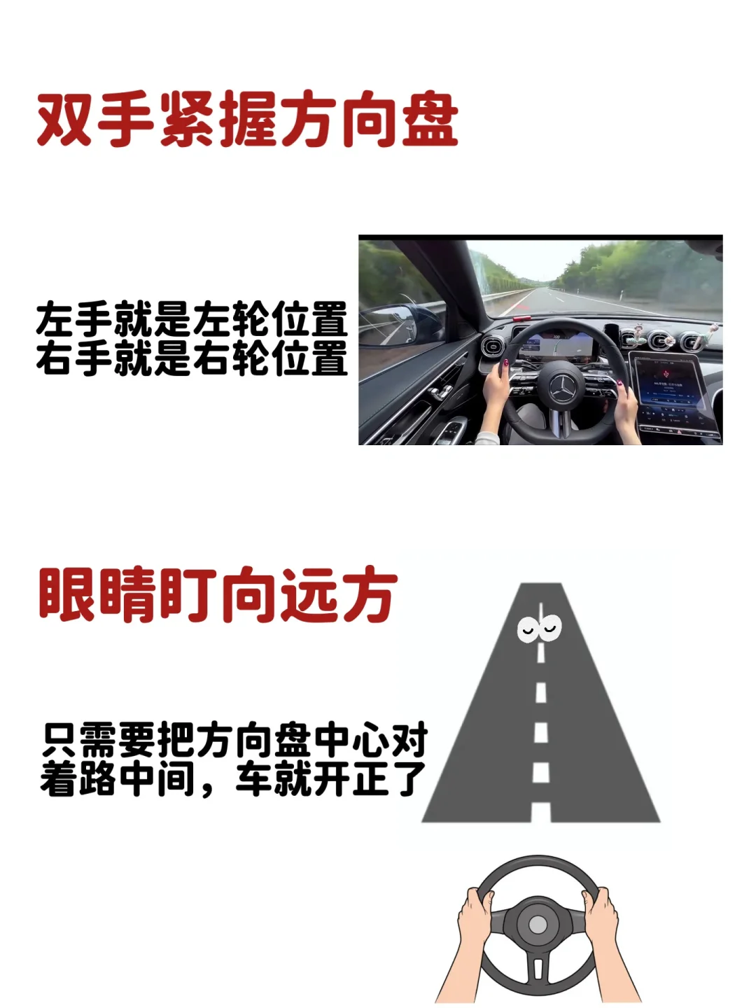 只需要把方向盘中心对准路中间,车自燃就开正了