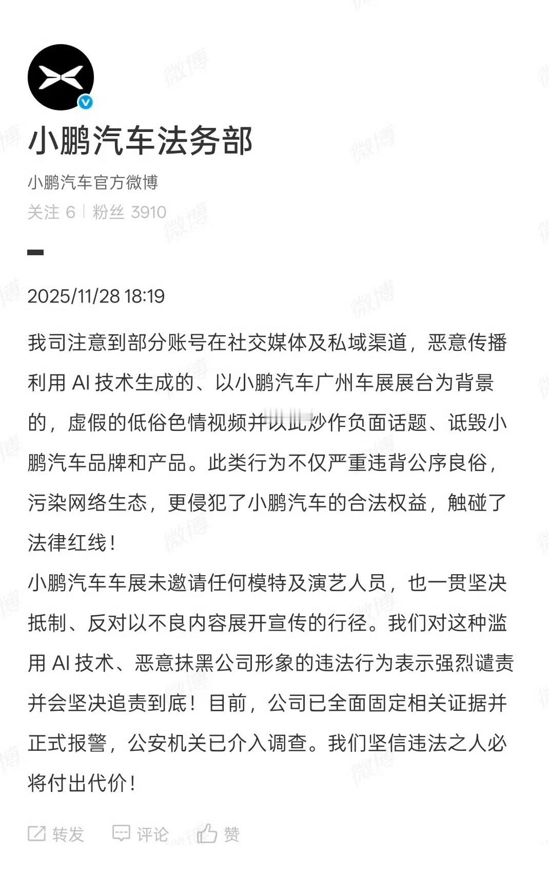AI真是无所不能有人利用小鹏车展展台AI做了色情画面小鹏这边目前已经报警小鹏报警