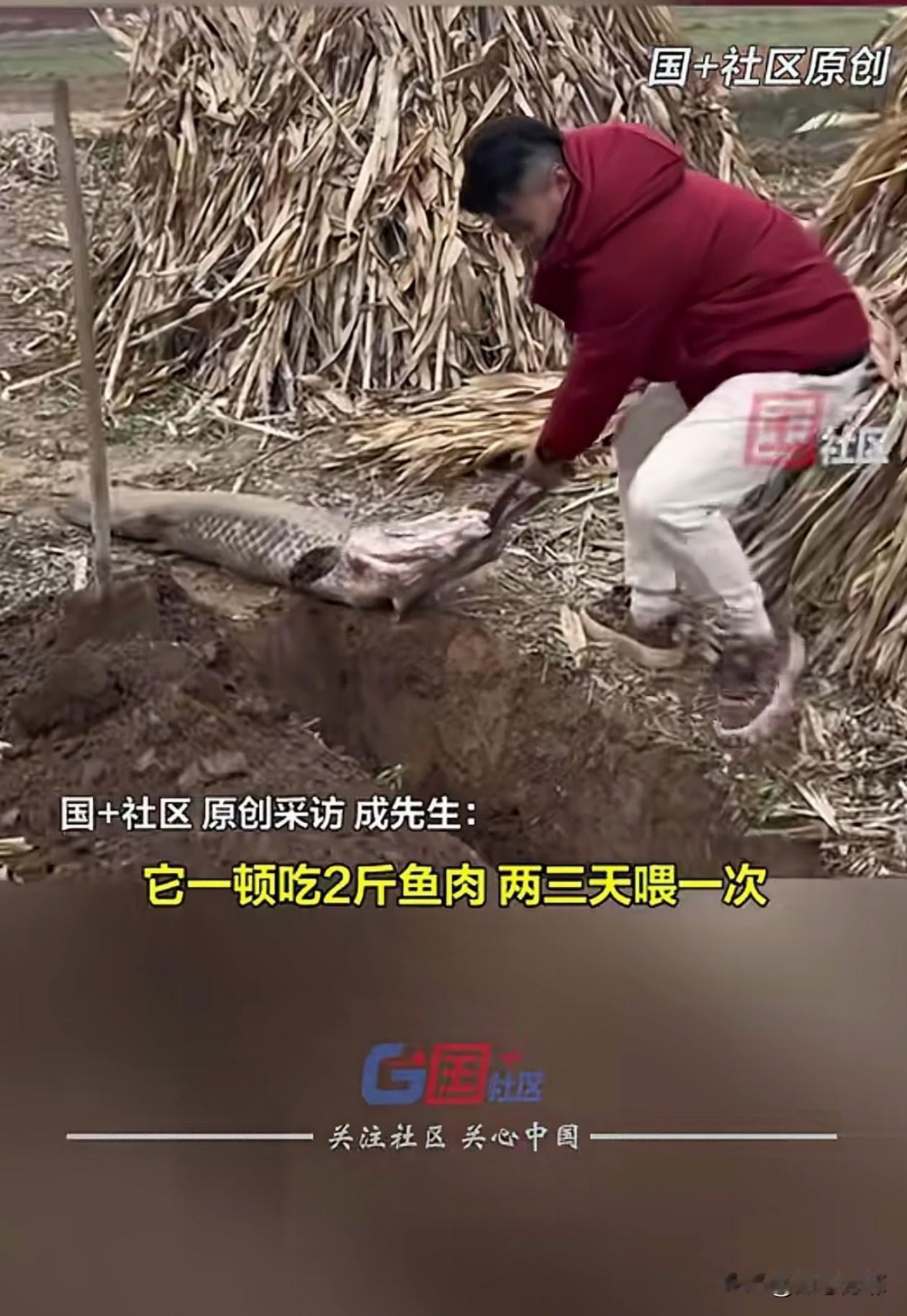 山东,男子回家喂鱼,突然发现自己养了12年的巨骨舌鱼,寿终正寝了,他对鱼已经有了感情,舍不得吃,于是把鱼拉回老家深埋了。 这条鱼长1.7米,重100斤,打小就是男子人工喂养的,隔两三天就喂一次,每次得喂两斤肉。 这么多年照顾下来,男子早就把它当成了陪伴自己的伙伴,感情特别深。 它自然寿终正寝后,男子心里又难受又舍不得,只想给老伙计一个体面的结局,顺便留个念想。 于是他特意把鱼收拾好,然后装到车上往老家赶,最后找了片合适的空地,把鱼埋好,给这段12年的陪伴画了个圆满的句号。 男子很重感情,12年的朝夕相处,早已让巨骨舌鱼超越宠物的身份,成为了家庭的一员。 男子专门驾车回老家深埋,是在和老伙计好好告别,也是对生命的敬畏和尊重,让人感动。 男子的做法很靠谱,比起随意丢弃,深埋能让鱼自然降解滋养土地,既没辜负感情也兼顾了环保,特别暖心。