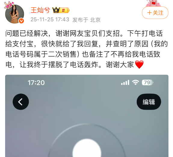 只能说王灿兮比较倒霉吧,遇到了这种事情。但她的安全意识也真的不太强,按理说工作人员如果频繁找她的话她应该会意识到是不是这个手机号之前有人在用,但她却并没有深思,反而在网友提醒之后才知道如果去解决,是不是有些太大条了。