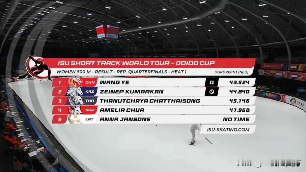 短道速滑世巡赛第四站多德雷赫特站进入第二比赛日争夺,中国队表现出色,特别是前几站状态低迷的女队员,本站有了很大起色,继昨天在1000米成功拿满冬奥会三个席位后,今天在500米和1500米也都顺利晋级。 女子500米预赛,受伤11个月后终于复出的王晔与张楚桐、王欣然共同出战,三人都晋级到1/4决赛,女子1500米1/4决赛,公俐和杨婧茹都以小组第二晋级半决赛,张楚桐拿到小组第三,需要参加复活赛。 男子1000米,刘少昂和林孝埈直接晋级,孙龙进入复活赛后,以小组第一晋级。男子5000米接力1/4决赛,中国队由林孝埈、李文龙、张柏浩和刘少林出战,轻松拿到小组第一,晋级半决赛,而韩国队因为林钟彦摔倒,未能晋级半决赛。混接半决赛,中国队两位女队员公俐和王欣然在交接时出现失误,公俐站错位置并摔倒,还带倒了意大利队员,最终被判犯规,中国队无缘A组决赛,成为本站比赛第一个出局的项目。