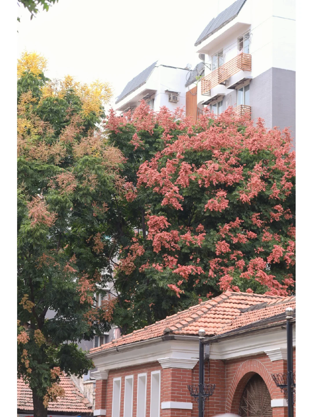 ✔️感叹这颗树太会长了,树形爆满果实多,大老远我就注意到了它,与红墙红瓦的建筑搭配好像漫画场景