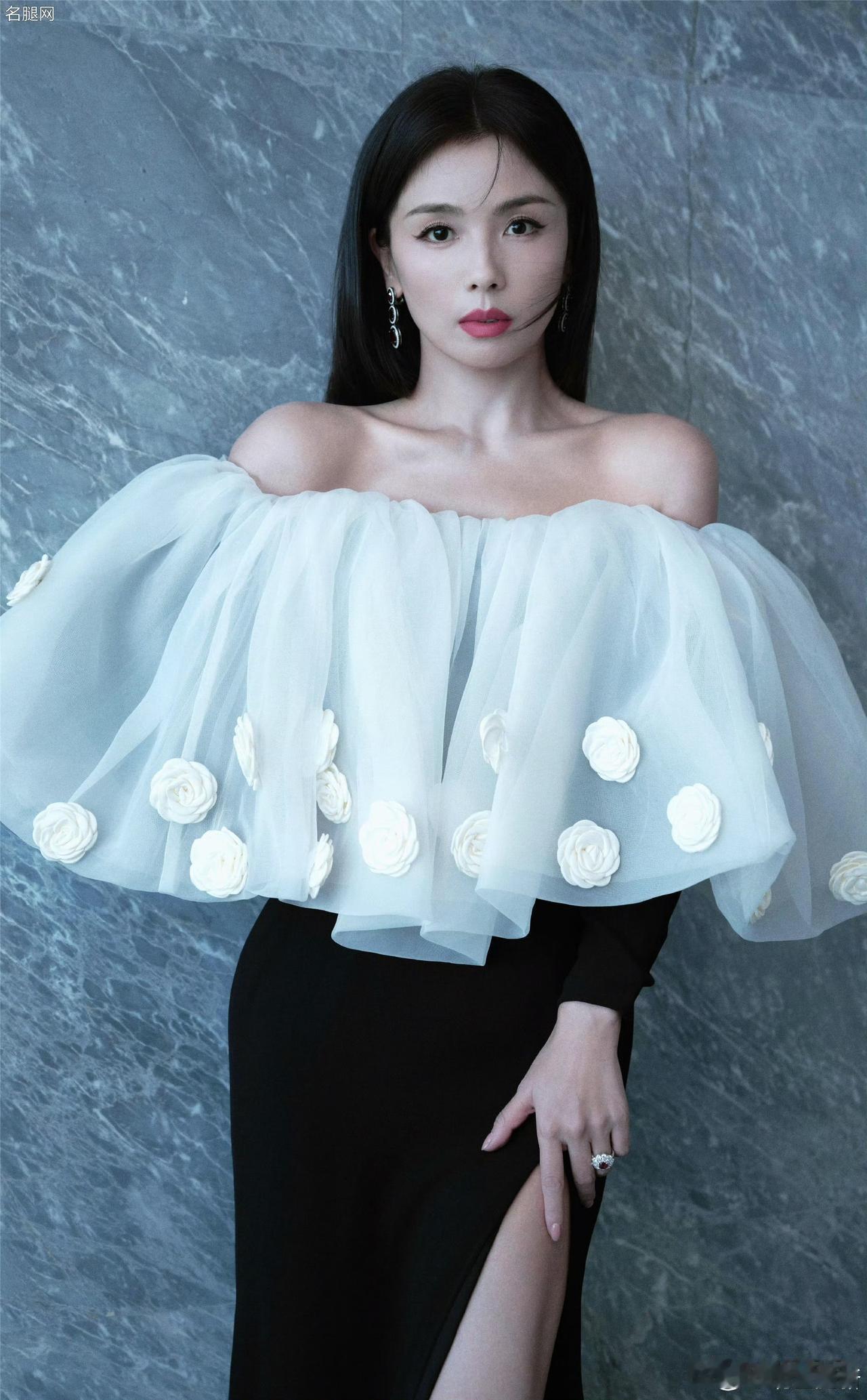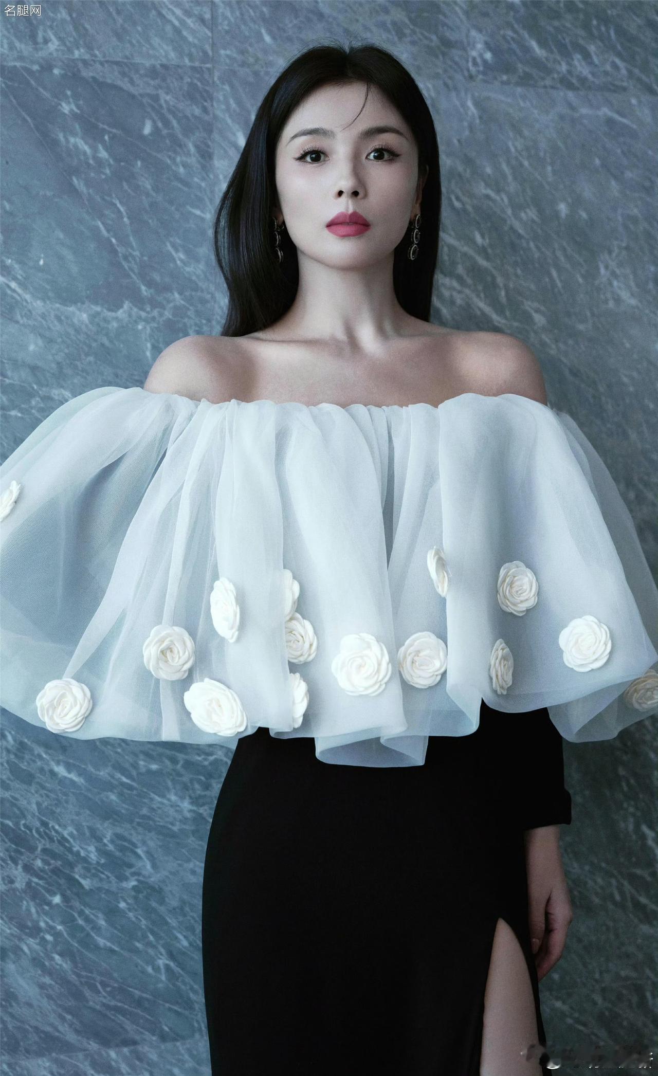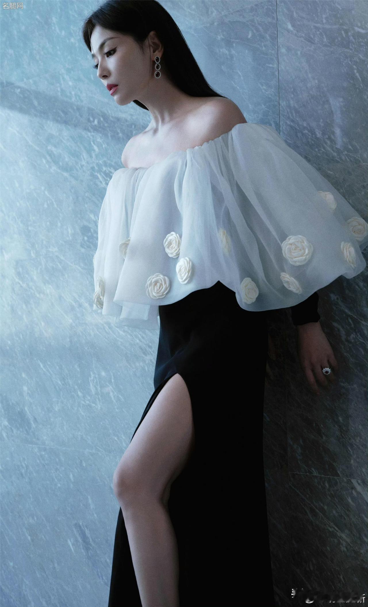 刘涛一字肩设计大秀雪肤锁骨,长裙高开衩秀出逆天美腿