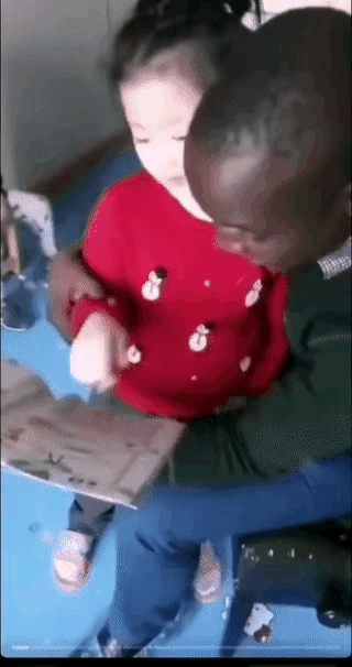 这个男子在教这个孩子学什么?感觉这个小孩好像也听懂了似的,看着一对一的样子,莫非是家里请来的家教?还是影视作品上的桥段?通过我个人的判断,感觉这是一段真实生活中的画面,这应该是一个双语幼儿园,幼儿园请的外教正在给孩子一对一的上课!