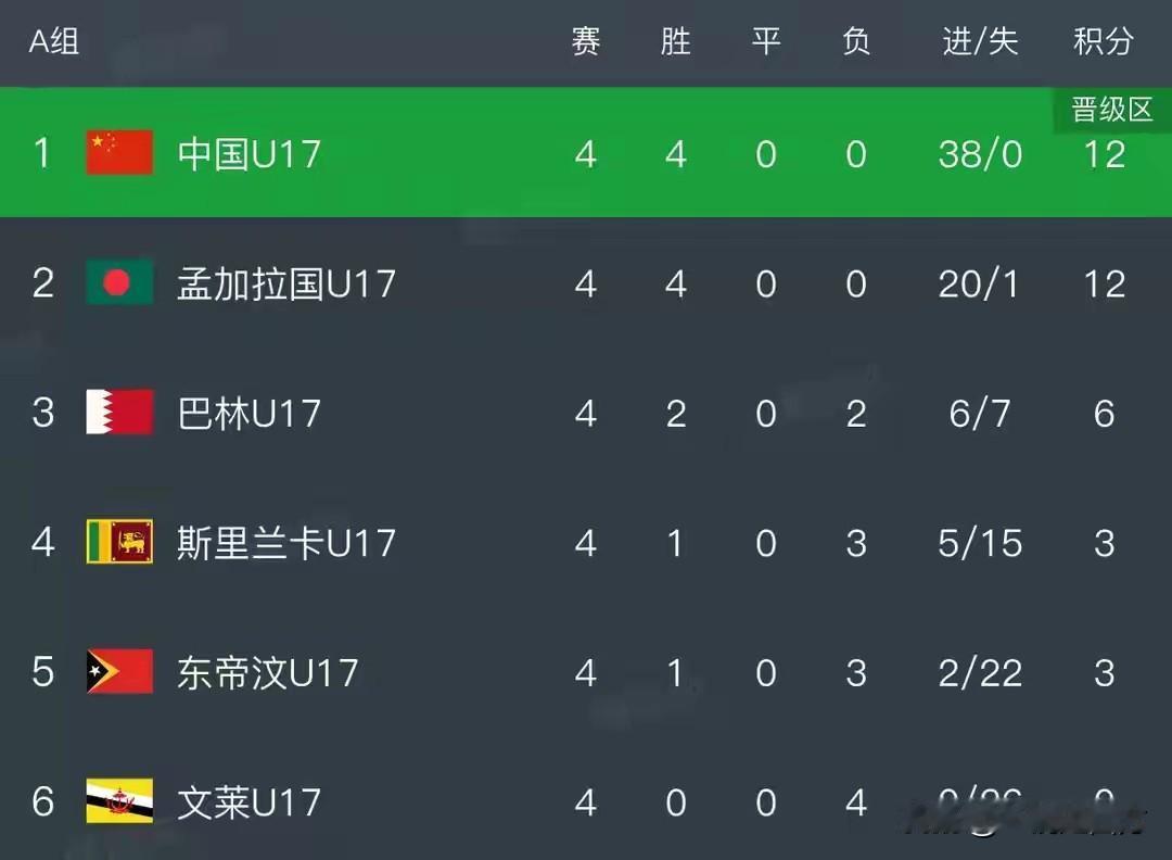 U17足球亚洲杯预选赛,中国U16男足迎来第四个对手斯里兰卡队,又拿到一场8-0的大胜,豪取四连胜,8个进球来自7位球员,四场比赛进了38个球,没有丟球,继续稳居小组榜首。明晚,中国队将在最后一轮迎战同样保持不败的孟加拉队,由于目前中国队在净胜球上领先对手19个,所以打平即可晋级明年在沙特阿拉伯举行的U17男足亚洲杯正赛。