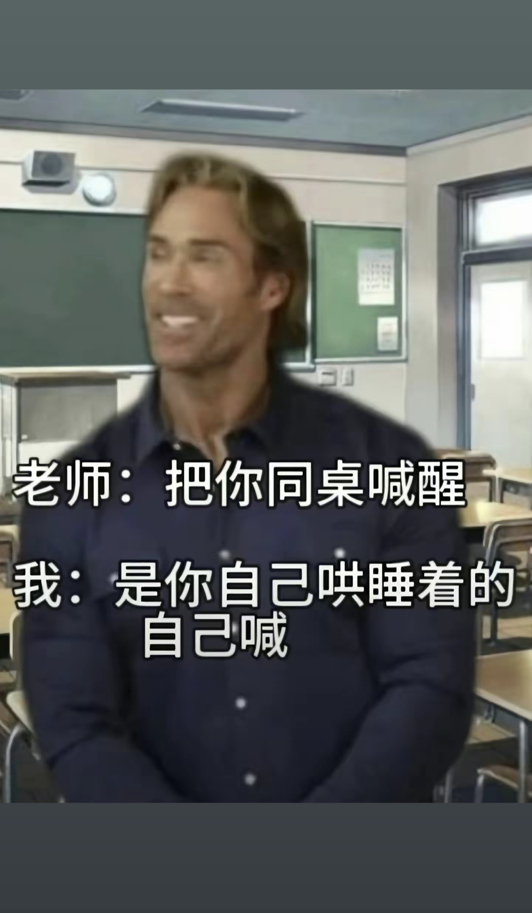 老师:把你同桌喊醒 我:是你自己哄睡着的自己喊