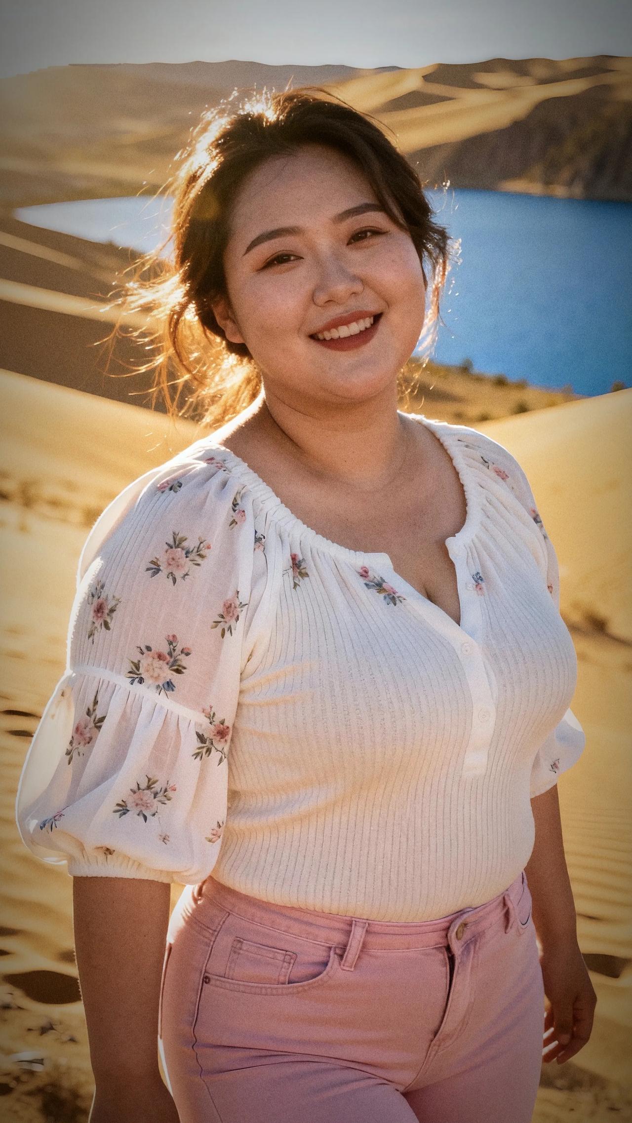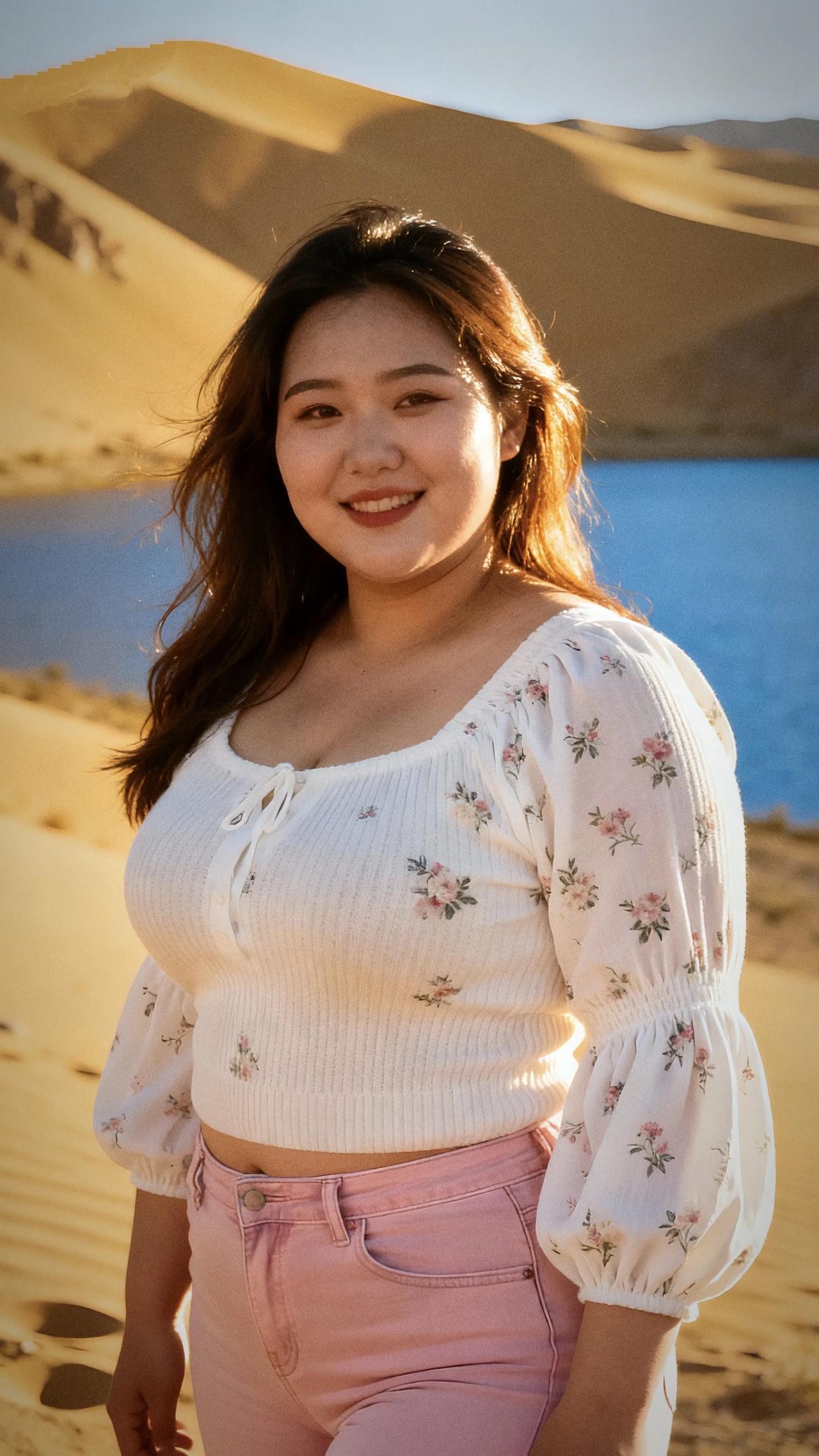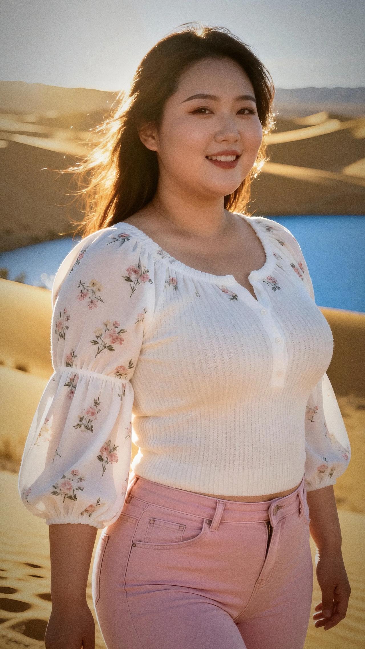 沙漠中的甜美笑容,花裙与沙丘的完美搭配沙漠拍照裙子 沙漠公主裙 微胖