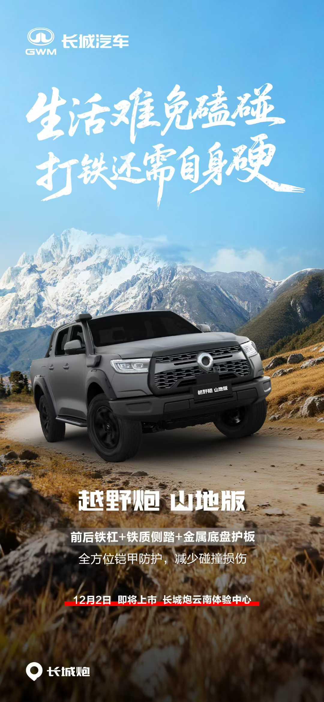生活难免磕碰 打铁还需自身硬 钢劲铁骨 铠甲防护 长城炮山地版12月2日即将上市 重载爬坡就看长城炮山地版