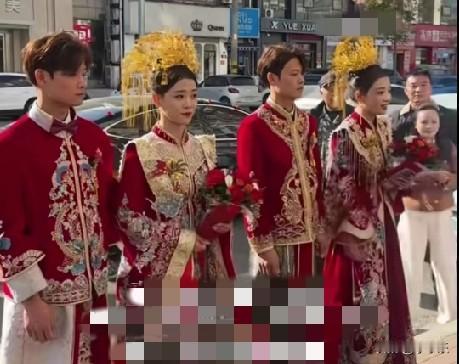 近日,河南商丘一双胞胎兄弟同一天迎娶双胞胎姐妹,婚礼现场简直就像电视剧里的情节在现实中上演。 天!这是多大的缘份呀!复制粘贴的幸福,喜上加喜,亲上加亲,以后生的孩子既是堂兄弟姐妹,又是表兄弟姐妹,这和亲兄弟姐妹也没啥区别了。果然是双胞胎呀,想法都一样,审美择偶观点也出奇的一致,小时候都穿着同样的衣服,结婚了选择的人生伴侣也是一样的,以后生娃会不会也一样?缘分真奇妙呀!