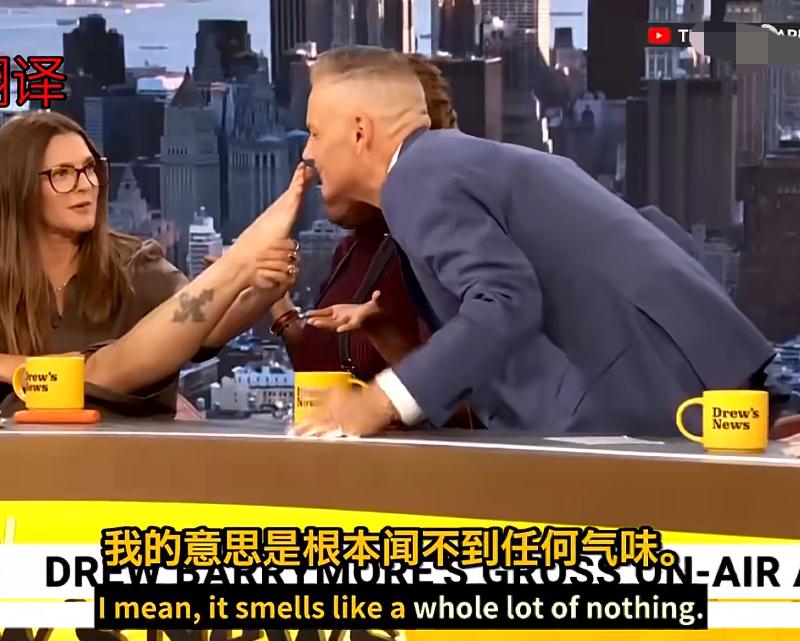 美国女演员在脱口秀中为了证明自己的脚没有沙丁鱼的臭味,直接把脚抬起来自己闻,闻完之后说“我的脚真的不臭”还递给了两个主持人闻,男主持甚至主动凑上去闻,美媒批评这种因为是低俗的节目效果,试问全世界有哪个节目会当众闻脚臭味呢?
