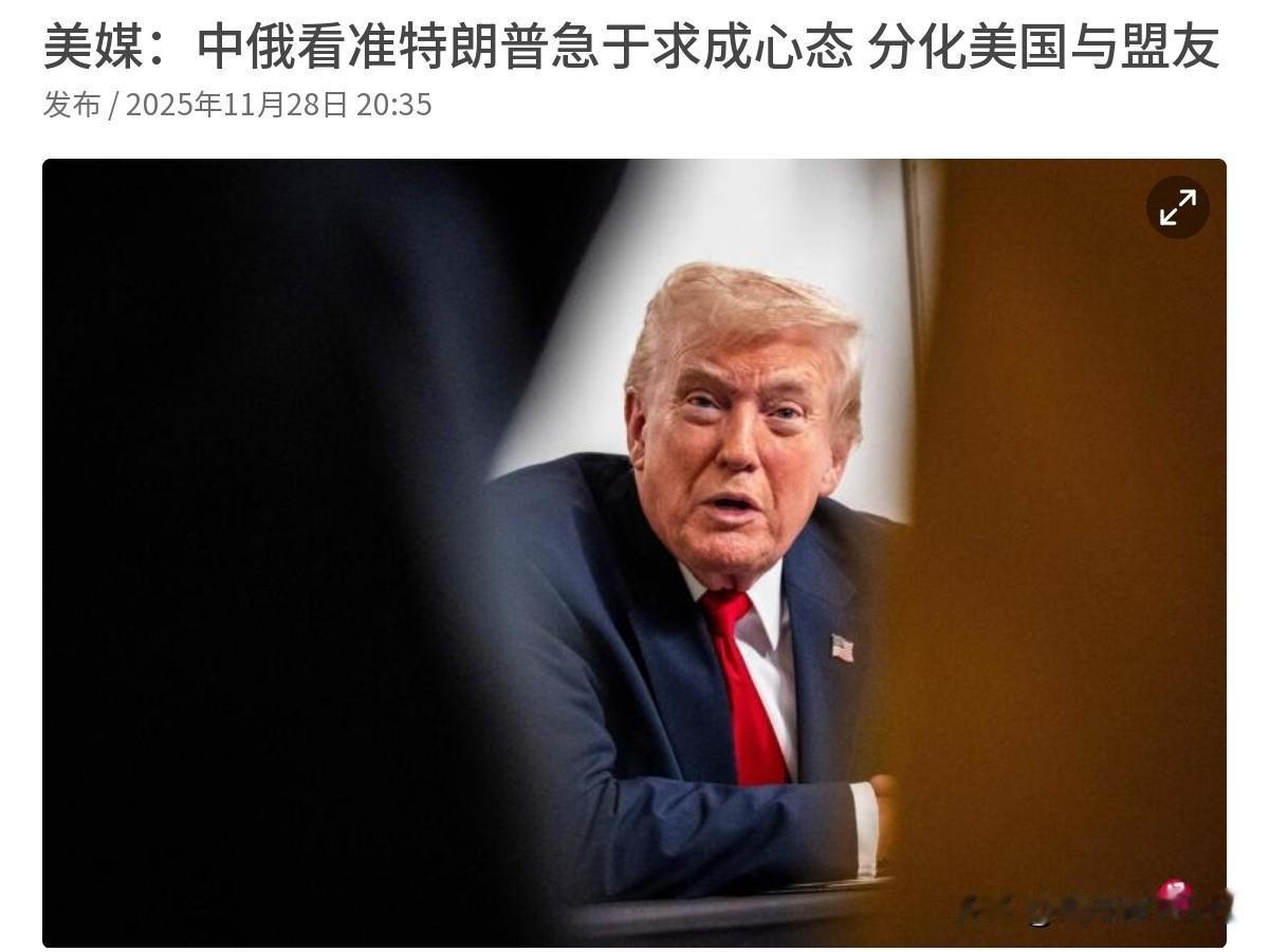 美媒表示,特朗普的心思被中俄看透了!11月28日,美媒刊文表示,美国总统特朗普追求短期利益、急于求成急功近利的心态,已被中俄所利用,借此在美国与欧亚盟友之间制造裂痕,削弱由华盛顿主导的国际安全秩序。在欧洲,俄罗斯看准特朗普急于结束俄乌战争的意愿,意图将俄乌和平计划导向自身的战略目标,包括合法占有乌克兰大片领土,并彻底湮灭乌克兰加入北约的希望。 在亚洲,中国则意在促使特朗普“放弃”台湾,以换取中美达成特朗普一心期待的中美贸易协议。对于美媒的论调我们怎么看呢?不客气的说,美媒的论调并不正确,并没有看清楚根本性的问题。而根本性的问题是什么呢?根本性的问题是特朗普不得不处理美国的国债问题。一句话,美国维系全球霸权的成本越来越高,而美国国库越来越空虚,美国金融存在巨大的内爆风险。 面对这样的烂摊子,美国总统特朗普能怎么办呢?很显然,在这样的背景下,美国不得不,且只能进行战略收缩。美媒没有看见维系霸权的成本,而只是批评特朗普追求短期利益,但真正的原因是美债问题迫在眉睫,十万火急,如果美国后方不稳,美国的霸权维系的下去吗?特朗普本人当然不愿意放弃全球霸权,但如果只能二选一的时候,战略收缩未必不是明智之举。 如果欧洲愿意完全承担俄乌战争的开支,相信美国会愿意俄乌战争打下去。如果中国实力不强,美国只需要付出一点点成本,美国当然不会考虑“弃台”。但现实是美军介入台海风险极大,代价太高,美国根本承担不起。特朗普在台湾问题上的谨慎,恰恰说明特朗普知道台湾问题兹事体大,绝非美国可以鲁莽而为。很显然,美媒对特朗普的批评,这是典型的只看见皮毛,而没看到根本。