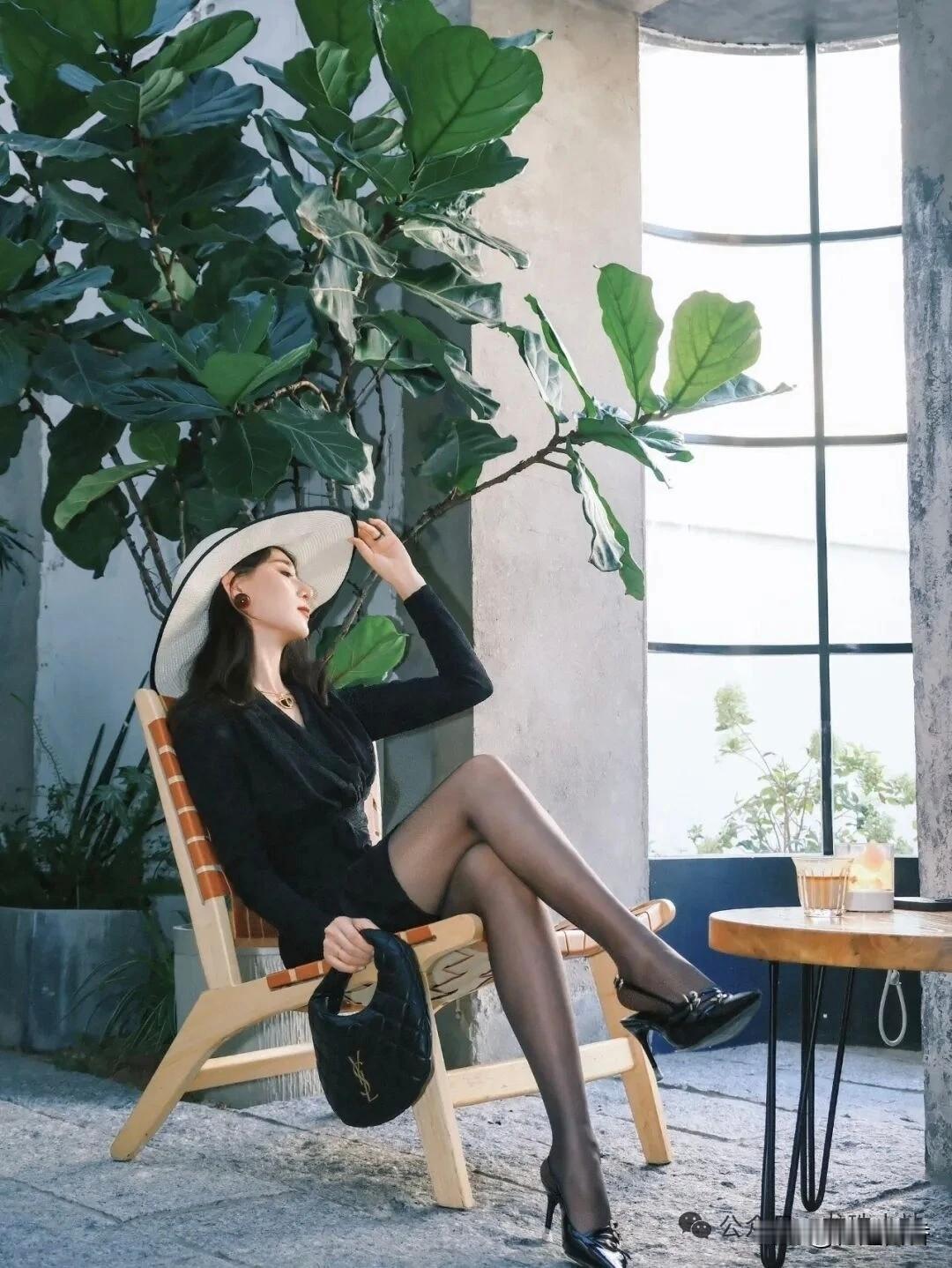 优雅午后,绿植相伴,黑裙与白帽的完美搭配,尽显时尚与自然之美。如何将优雅与性感完美融合呢?