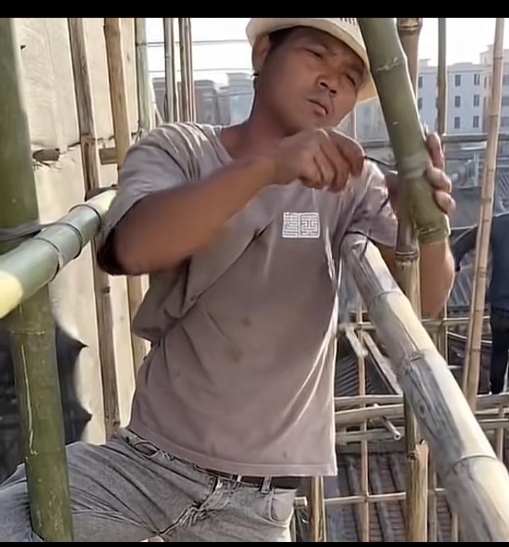 香港架子工真是传奇,技高人胆大 用竹子搭架子用在三四层楼高的建筑可以