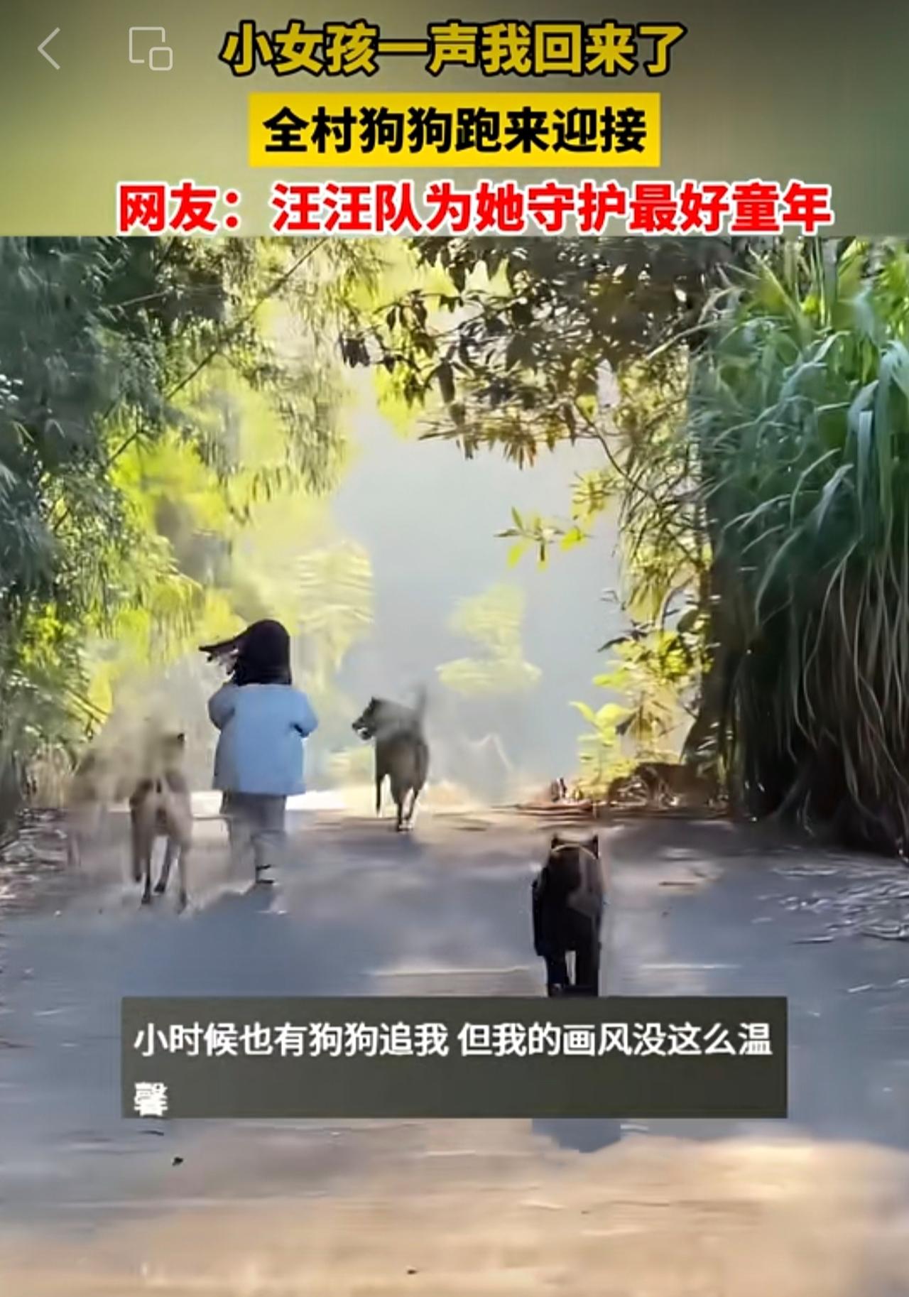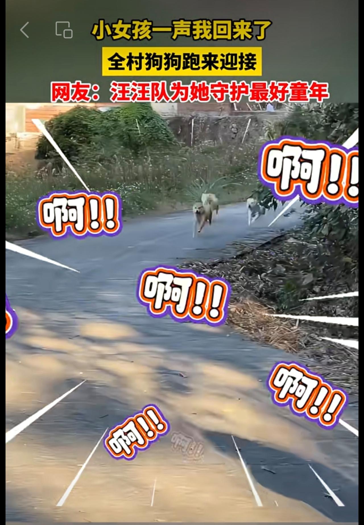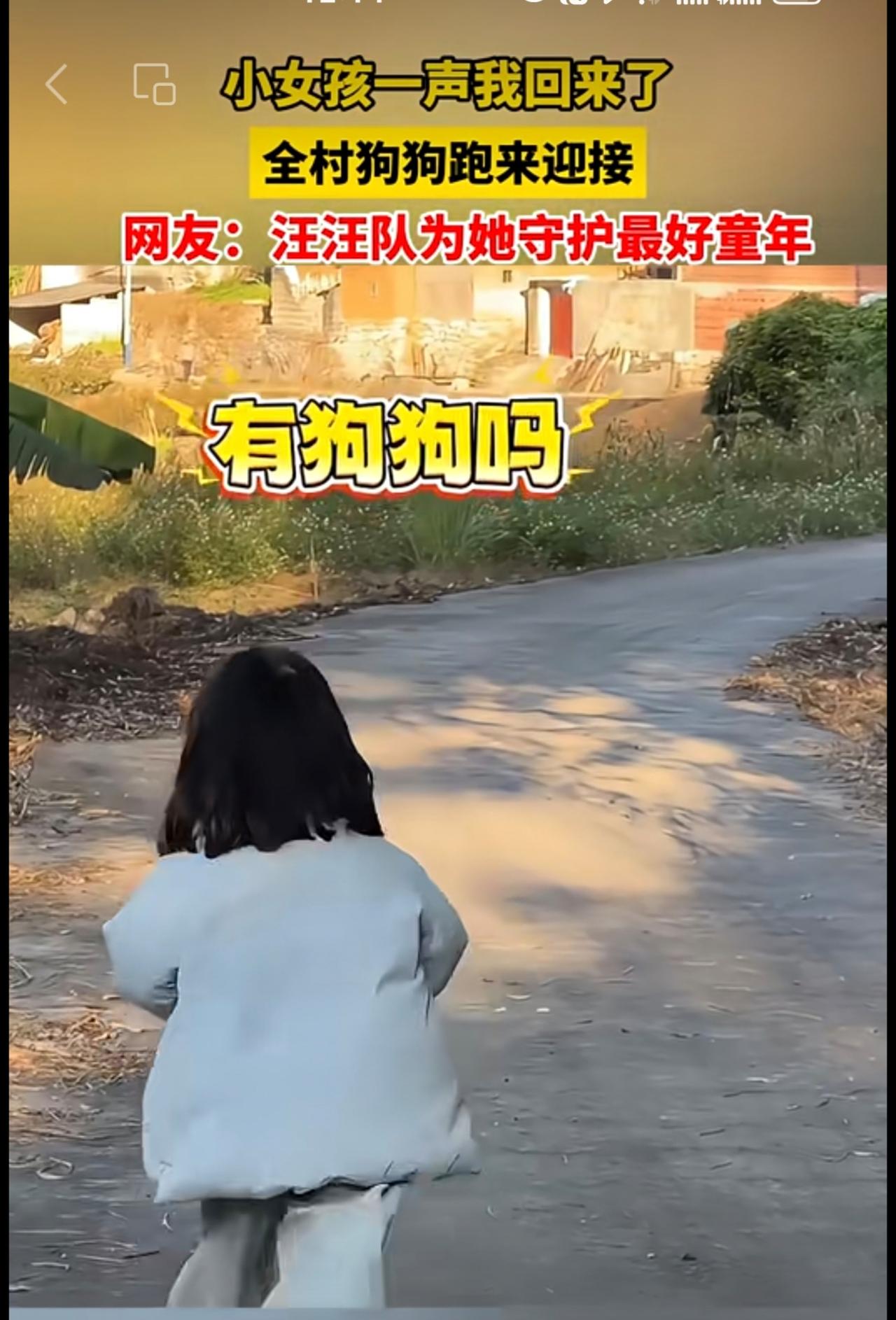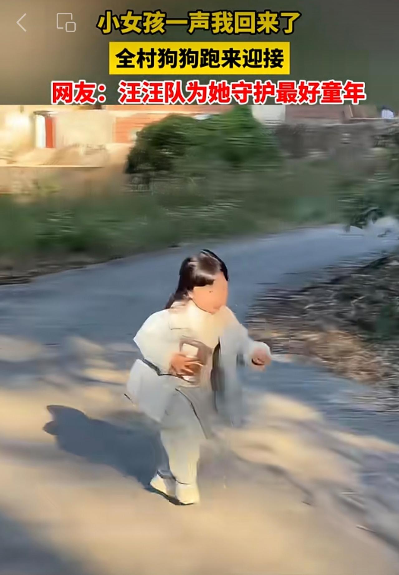 小女孩回到村里,一声“我回来啦”,全村狗狗立马顺着声音方向跑来迎接。网友:汪汪队为她守护最好童年。(来源:新华社、小小怪月仔) 萌娃 人类幼崽 萌宠 童年