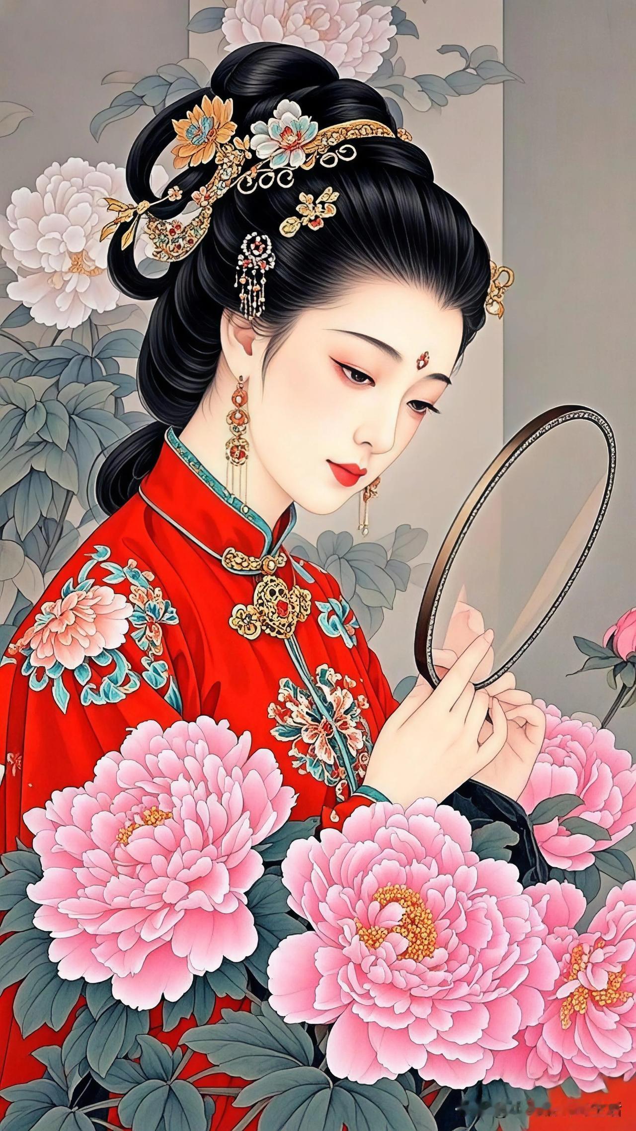 花钿美人,古韵犹存。 临摹画画分享 花饰古风照 国风花钿 花钿妆容模板 古景花