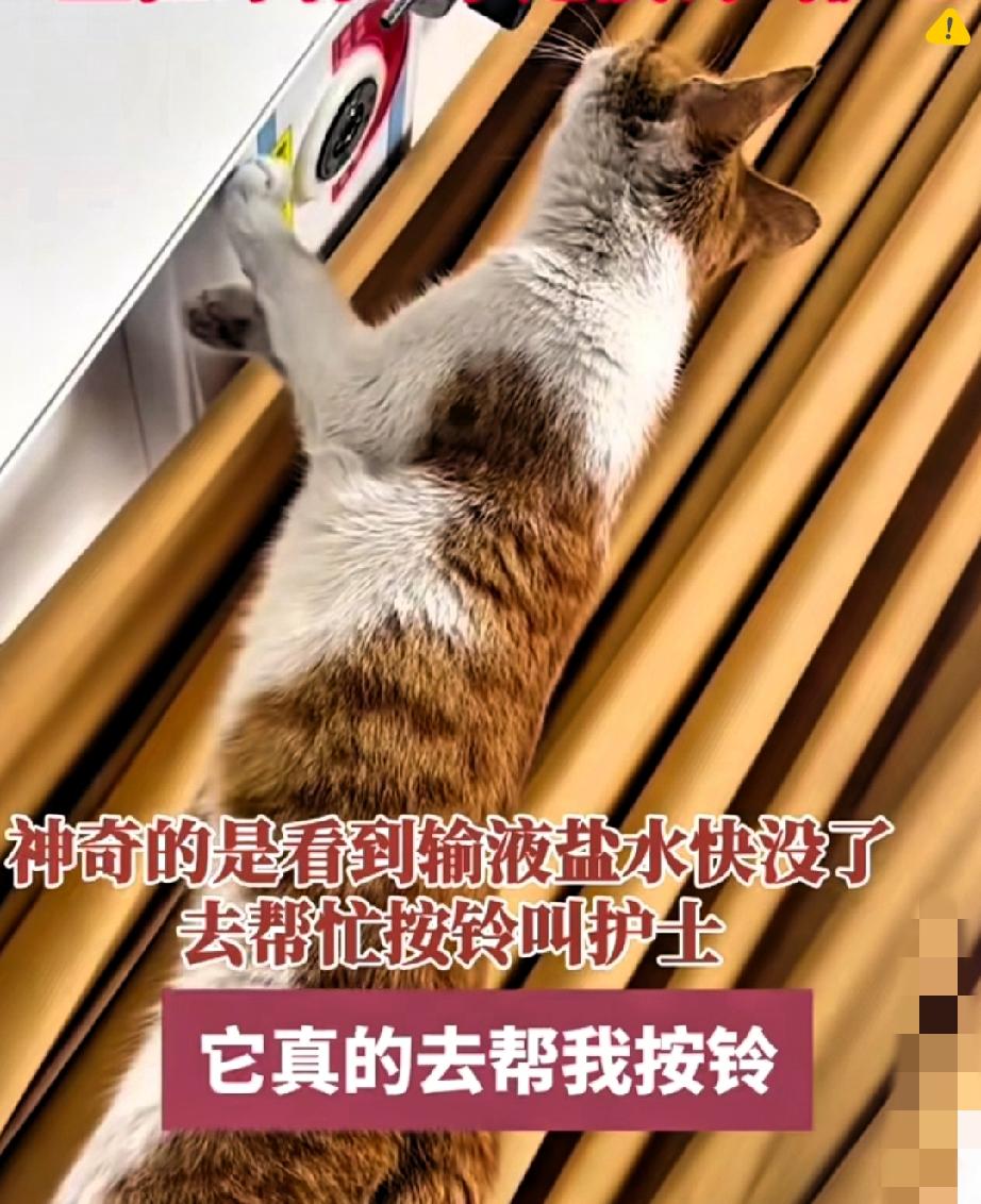 破防了! 诊所里的守瓶猫咪,藏着最戳心的温柔救赎 输液睡着的姑娘醒时,脚边竟卧着只猫咪,正死死盯着吊瓶,药水快输完时,它立马跳起来摁响了呼叫铃。 护士进来后红了眼,说这猫原是位老人的伴儿,老人输液时走了,它便总怪自己没早提醒,执拗地守着每个输液的人,想补那份没来得及的守护。 原来动物的深情从不含糊,它把遗憾熬成执念,用笨拙的坚守温暖陌生人。 这份跨越物种的愧疚与温柔,比很多刻意的善意更动人,原来真心从不分高低,唯有纯粹最能戳中人心。 你遇见过这样自带温柔的小动物吗?