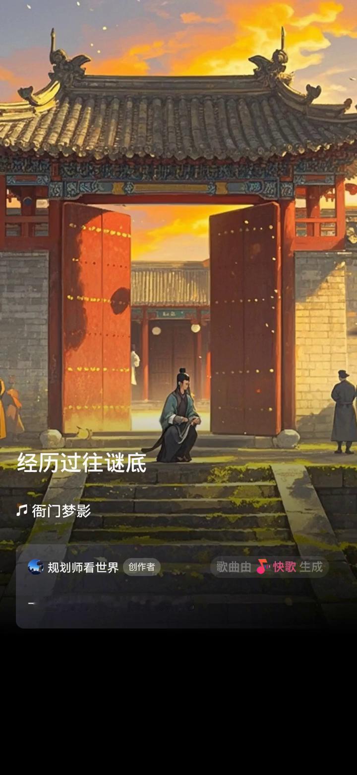 规划师看世界创作者。 歌曲由快歌生成,一起来听听我创作的歌曲吧。 夕阳倚,斑驳光影透衙邸。青苔凄凄漫上阶基,过往人渐渐散入风里。 衙邸呀衙邸,煌煌华夏威严府第。多少公正裁议,多少冤屈雪洗。 衙邸呀衙邸,浩浩中华法治轨迹。多少规章铭记,多少秩序维系。 捕快凛凛守着威仪,官老爷悠悠判着是非曲直。 衙邸呀衙邸,历历华夏风云记忆。多少贪腐痕迹,漫漫中华岁月长堤。多少兴衰交替,衙门曾是权力聚焦地。律法权谋相博弈,历史的车轮印历史的辙迹。 夕阳倚,斑驳光影透衙邸。青苔凄凄漫上阶基,燕巢寂寂空留梁脊。过往人渐渐散入风里。 快歌ID:193111163。更多精彩内容上快歌,用音乐表达生活。