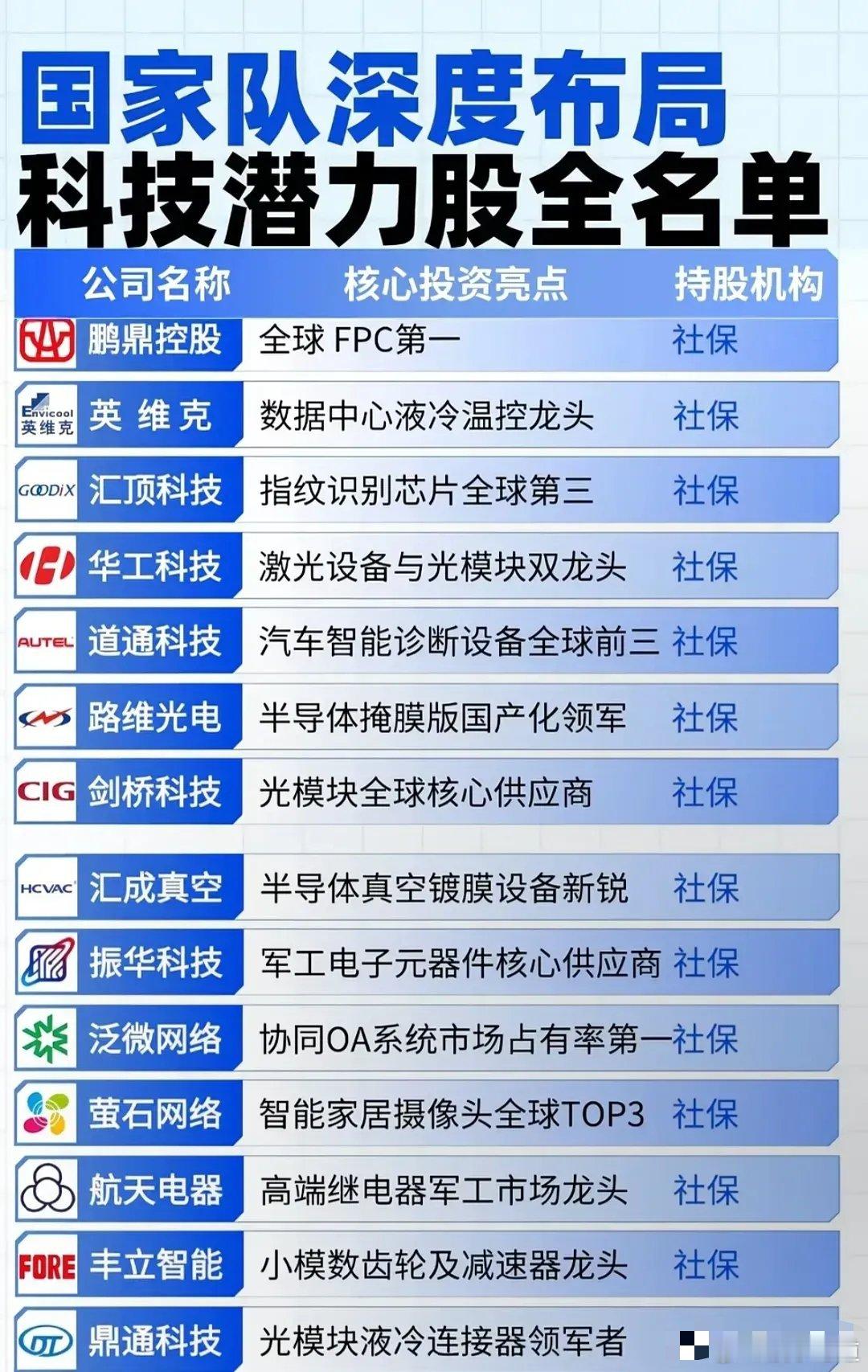 国家队概念叠加核心科技龙头!国家队重仓的科技潜力股名单来了!覆盖网络设备、芯片、