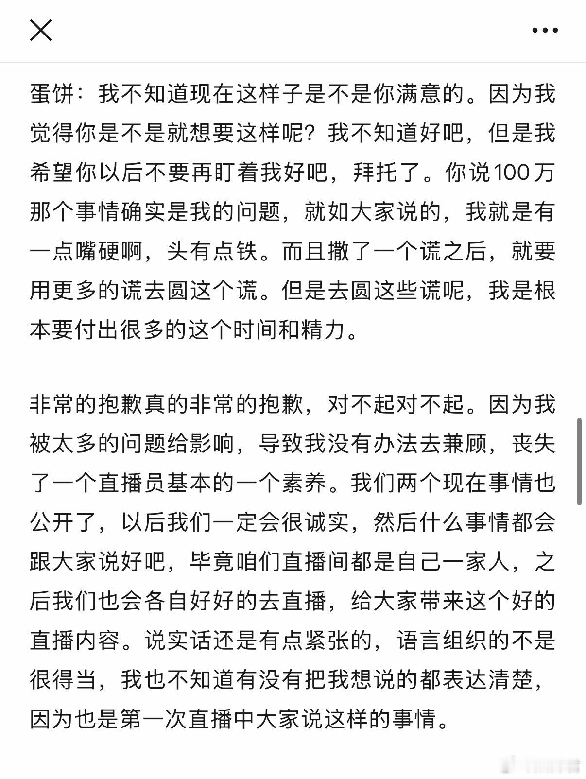 蛋饼:经历了这次团播之后,我希望我可以勇敢面对一切,包括自己的直播,生活,我不想