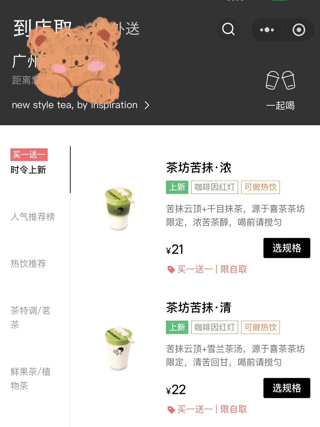 喜茶店员告诉我苦抹两杯的差别在哪了!!!! 爱喝经典抹茶纯粹口感的选「浓」 想尝鲜、清、爽茶香的选「清」! 两款都配了糯团子耶😃 今天店里买一送一!!!!! [偷笑R]下午我要去买![哇R][赞R]