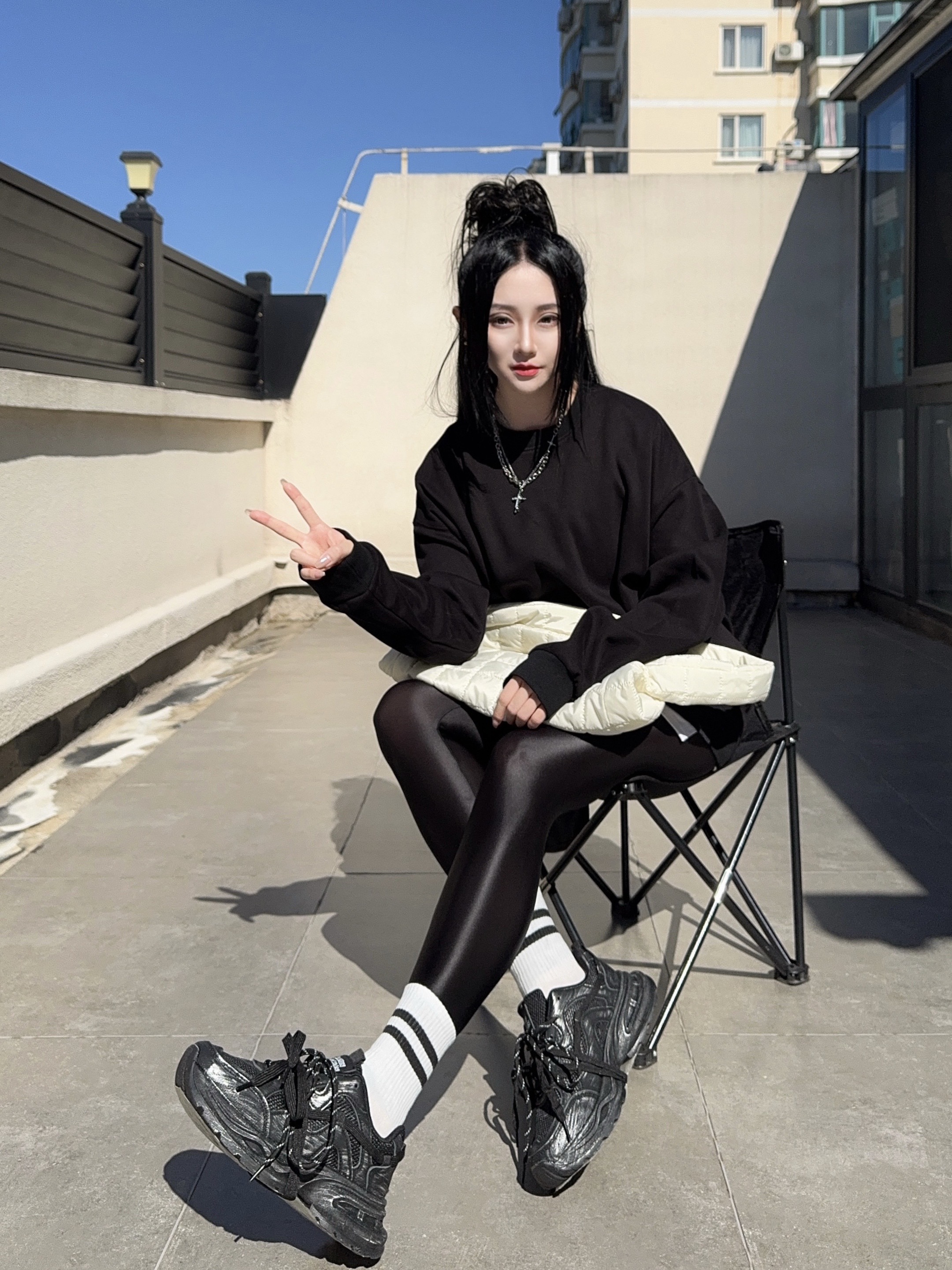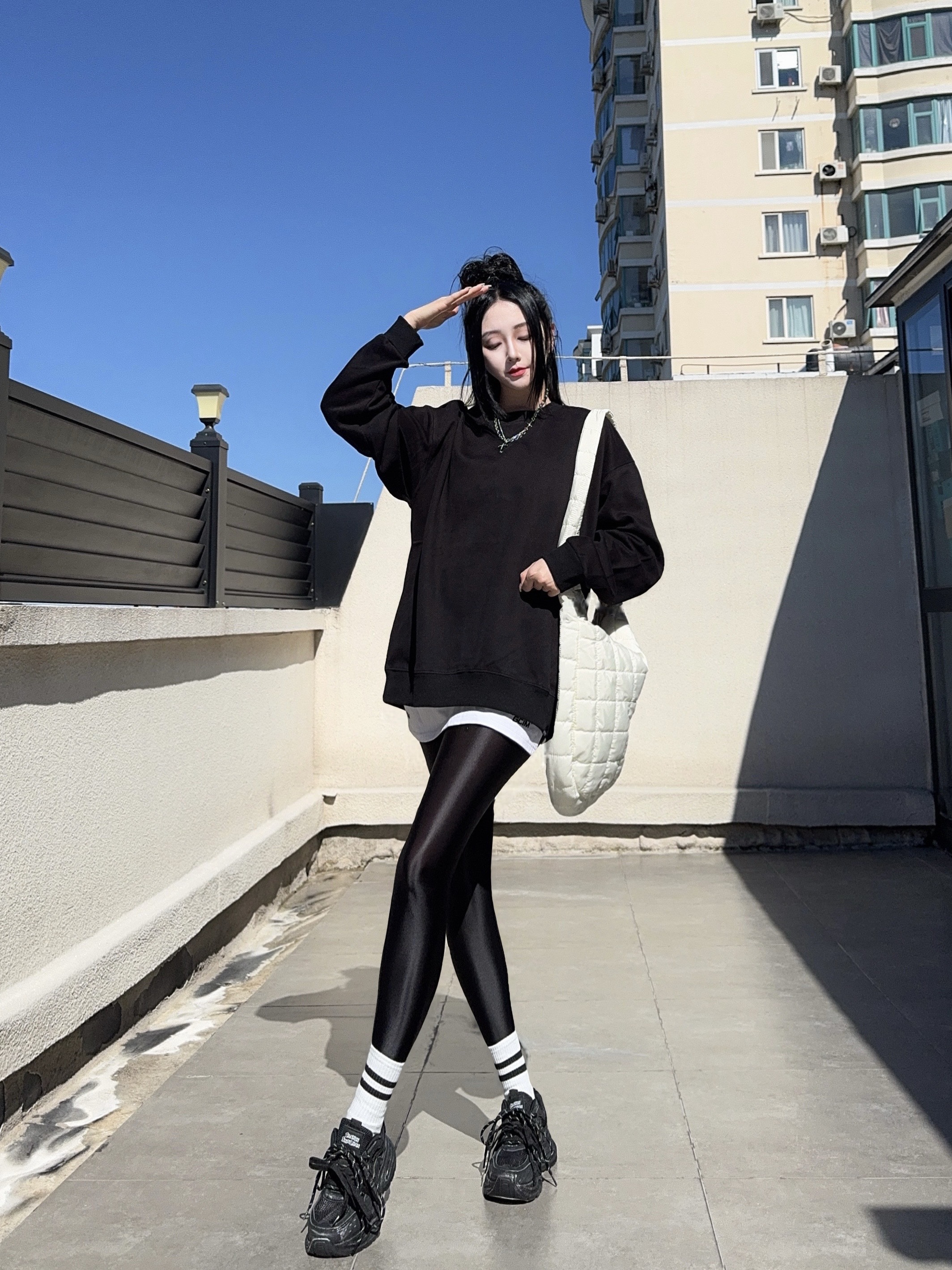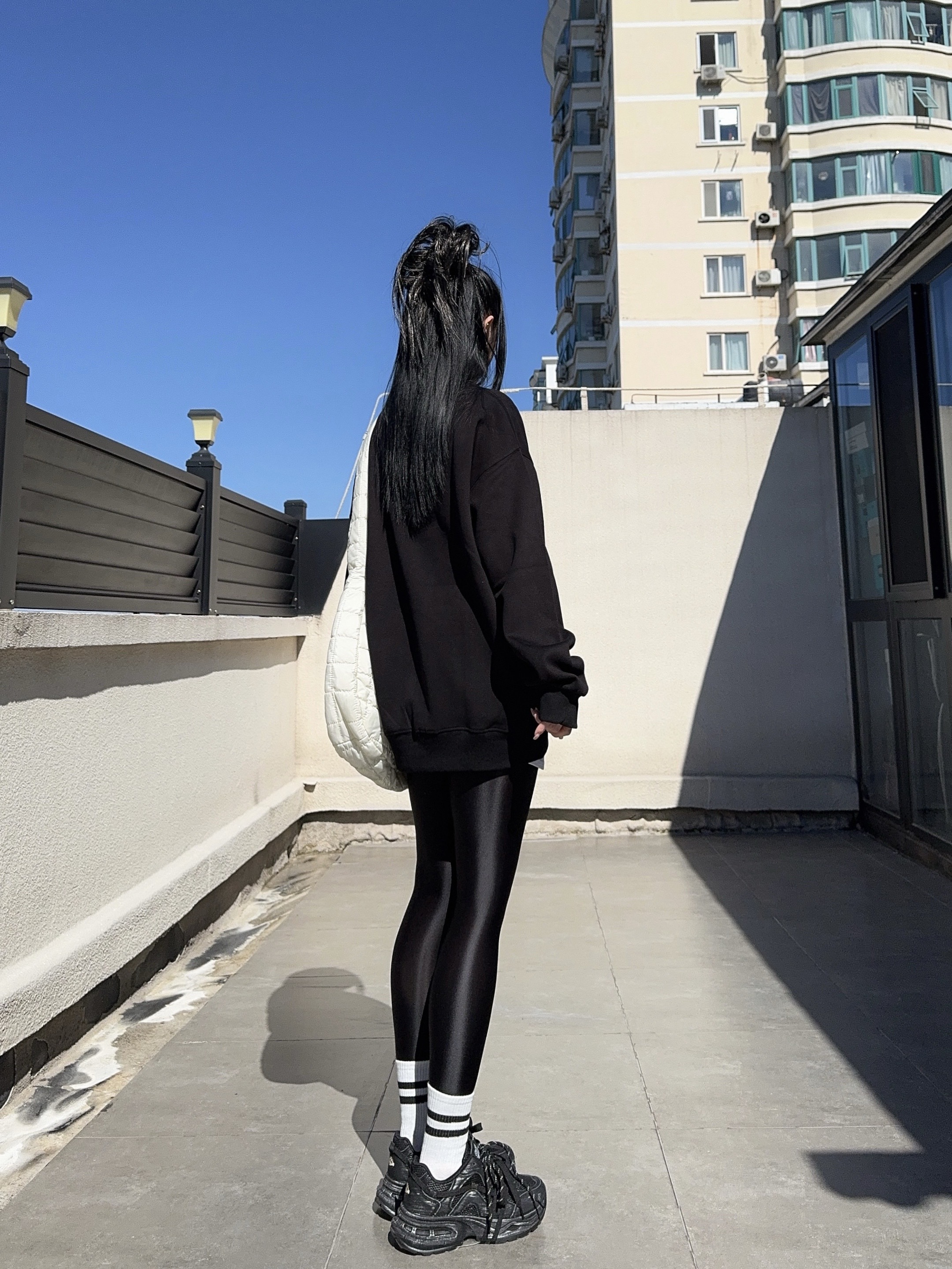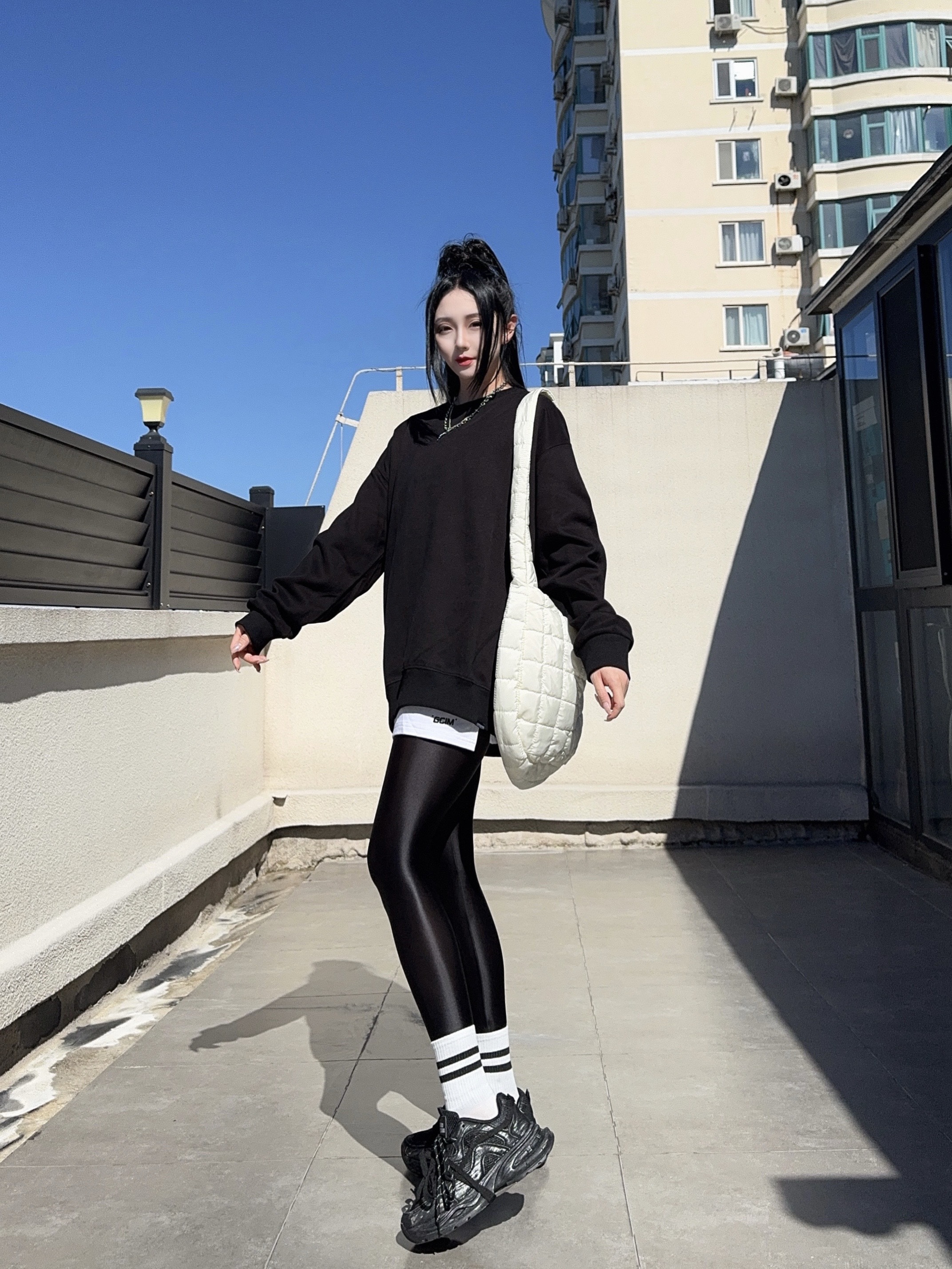 ootd穿搭 黑色系穿搭 光泽裤 健美裤穿搭
