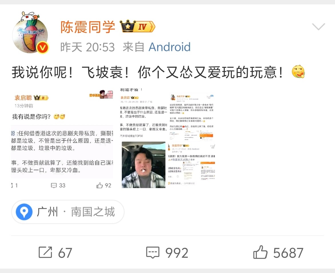 陈震和袁启聪怎么就吵起来了,袁发微博也没点名啊,更多是针对一些整体的现象吧……一