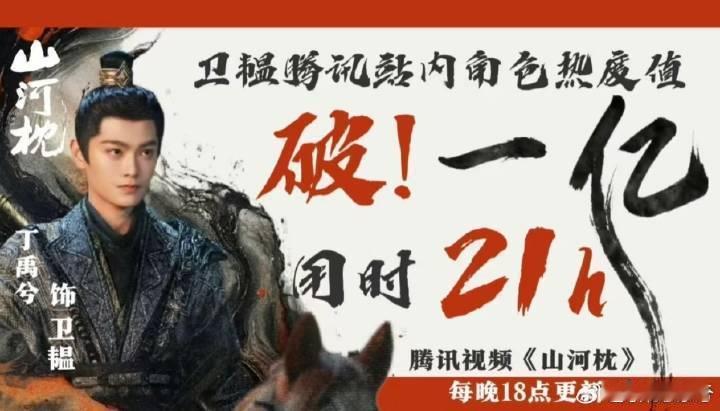 我记得当时山河枕播出的时候还没有宣发,丁禹兮还是二番的情况下快速破亿就很牛了,21小时就破亿了,怎么说呢,丁禹兮确实很牛,是我心目中人品演技颜值全肯定的三好学生腾讯2025年热度破亿角色